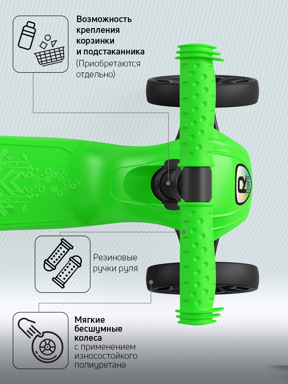 СохранитьСамокат, самокат трехколесный детский, с цветными ручками Buggy Boom Alfa Mini R, светло зеленый интересное: