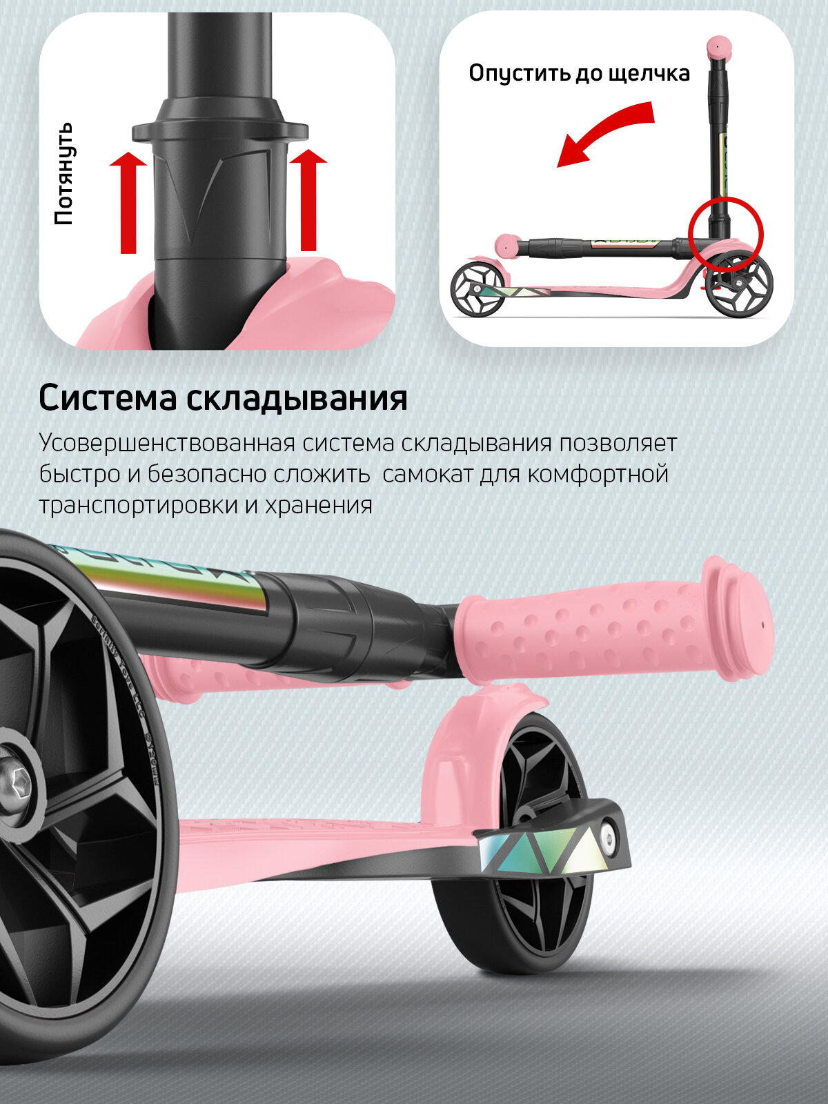 Самокат детский трехколесный COMIRON Yeenot "Зверята", регулируемая складная ручка, светящиеся колеса 110 и 75 мм, нагрузка до 40 кг, розовый / 1 шт.