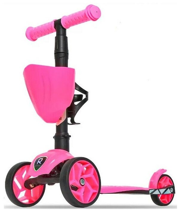 Cамокат трехколесный детский BuggyBoom Alfa Mini XR с корзинкой и подстаканником для бутылок, розовый 004-8057