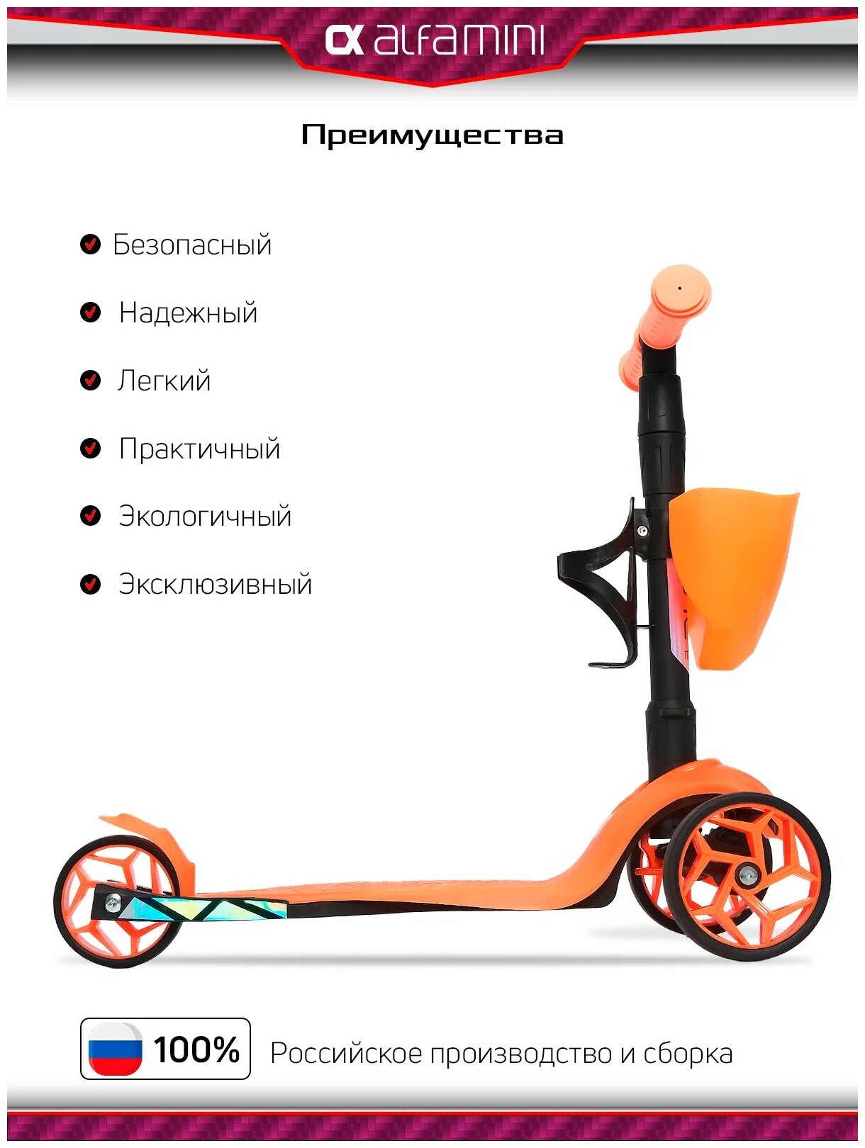 СохранитьСамокат ALFA 004-8053 Mini XR (морковный) интересное: