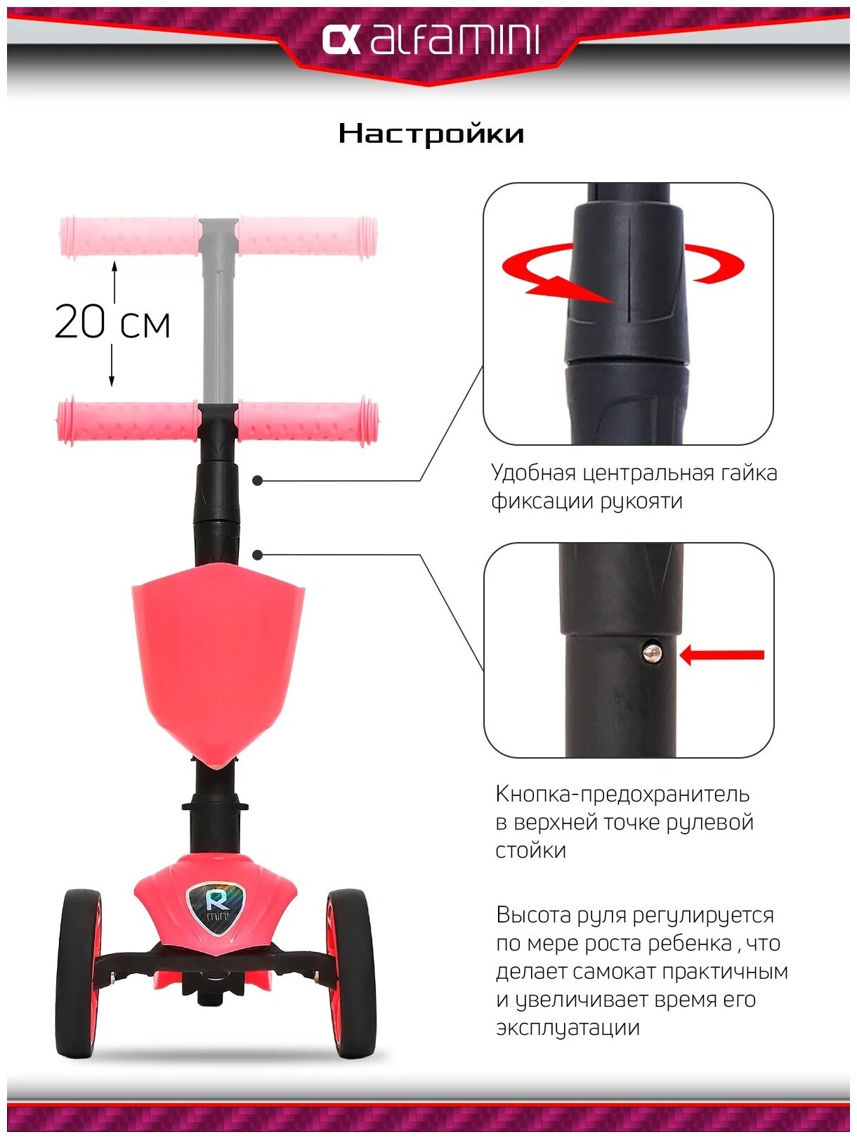 СохранитьСамокат ALFA 004-8037 Mini XR (бабл гам) интересное: