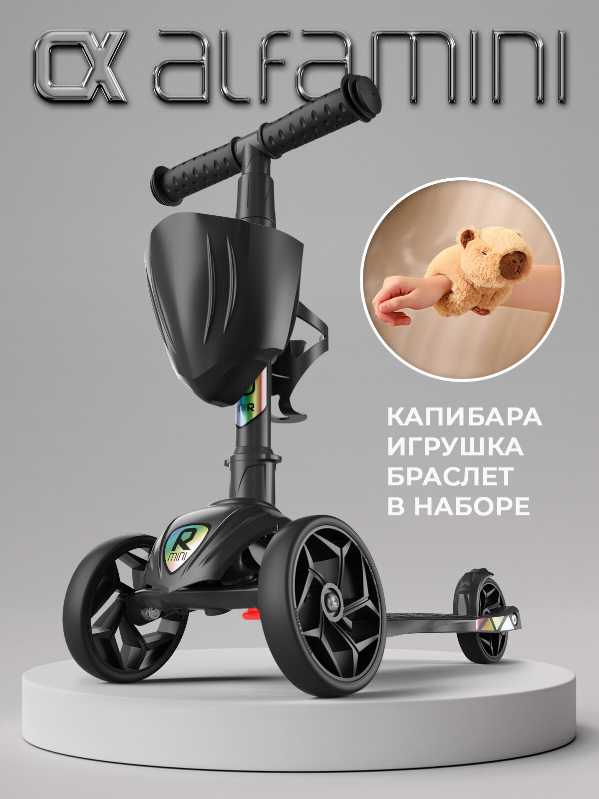 СохранитьСамокат, самокат трехколесный детский, с корзинкой и подстаканником для бутылок, Buggy Boom Alfa Mini, черный интересное: