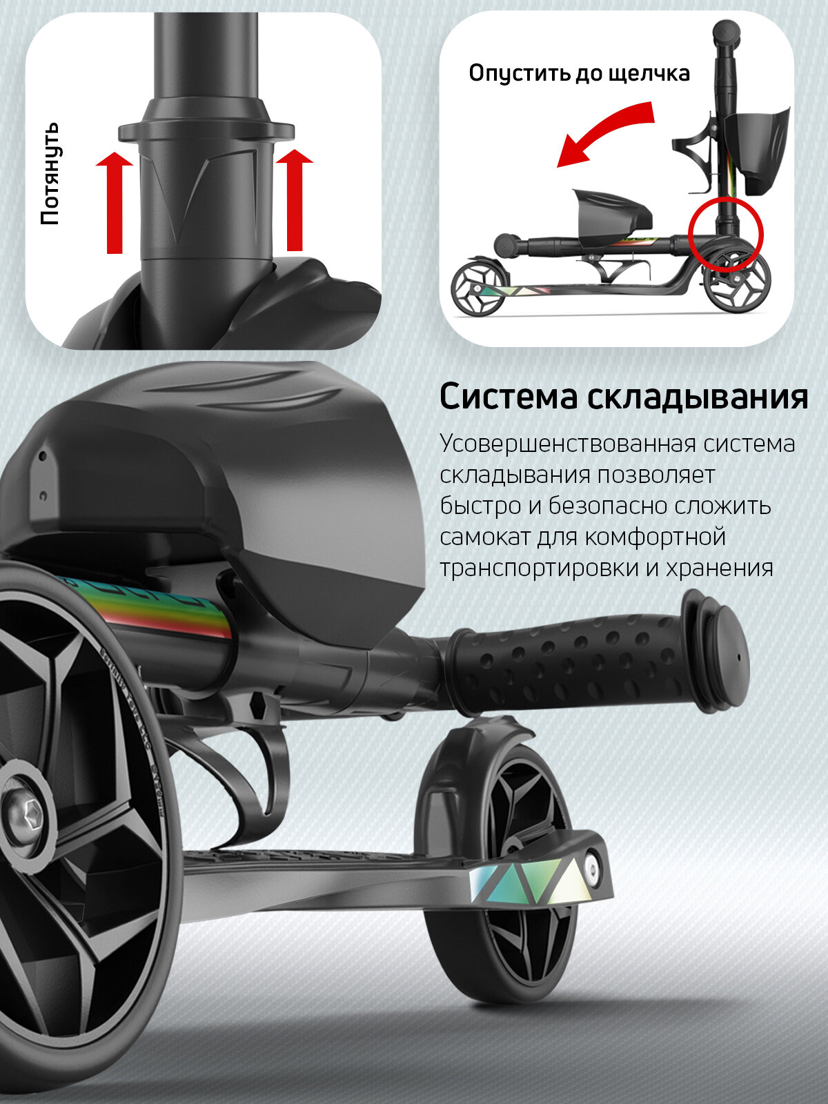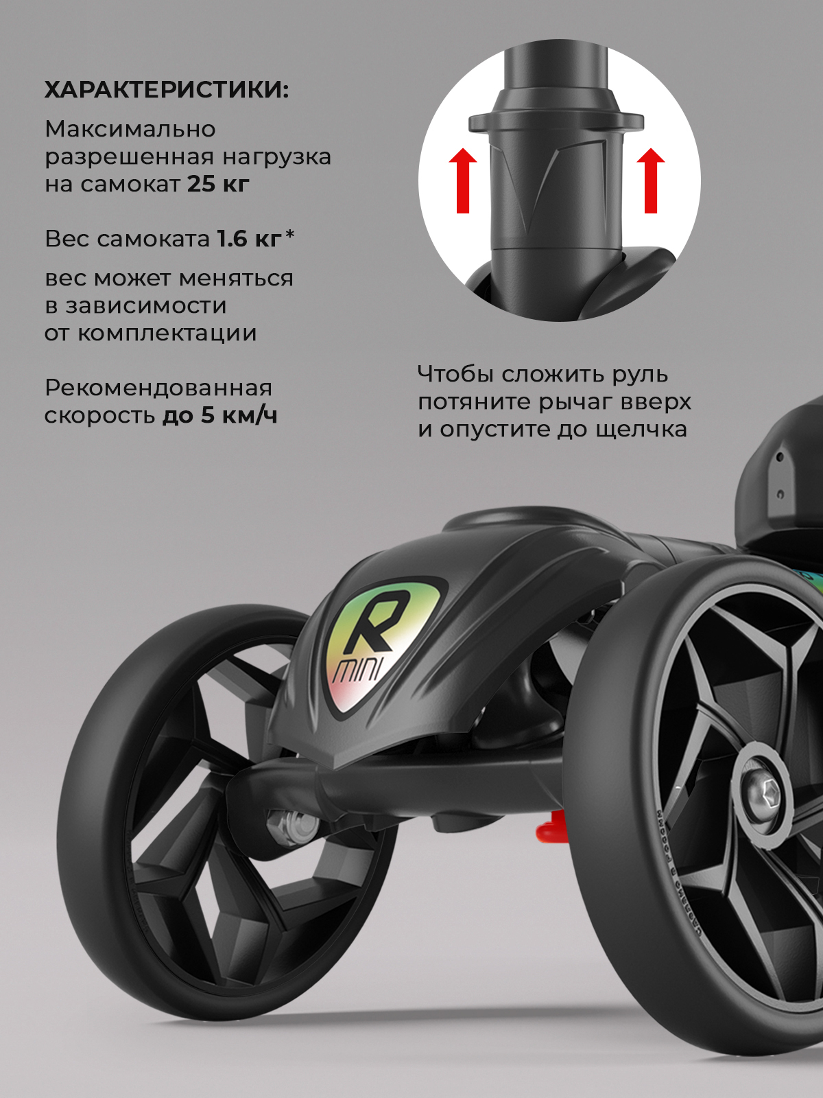 | Конструктивные особенности | регулировка высоты руля / складной |