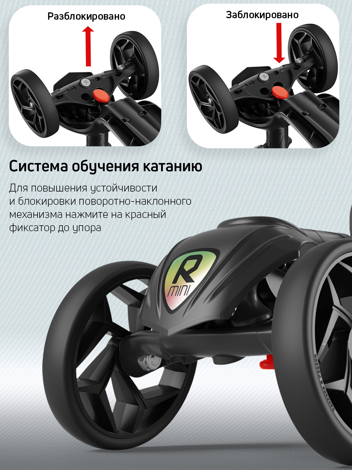 Порадовало , что можно заблокировать поворот руля. Малышке 1.3, только осваиваем самокат, так я за безопасность не переживаю Надеемся, в следующем году будут ещё со светящимся колёсами будут |
