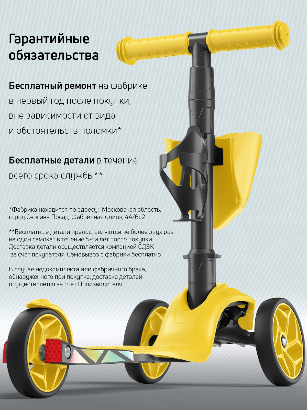 СохранитьСамокат, самокат трехколесный детский, с корзинкой и подстаканником для бутылок, Alfa Mini, желтый интересное: