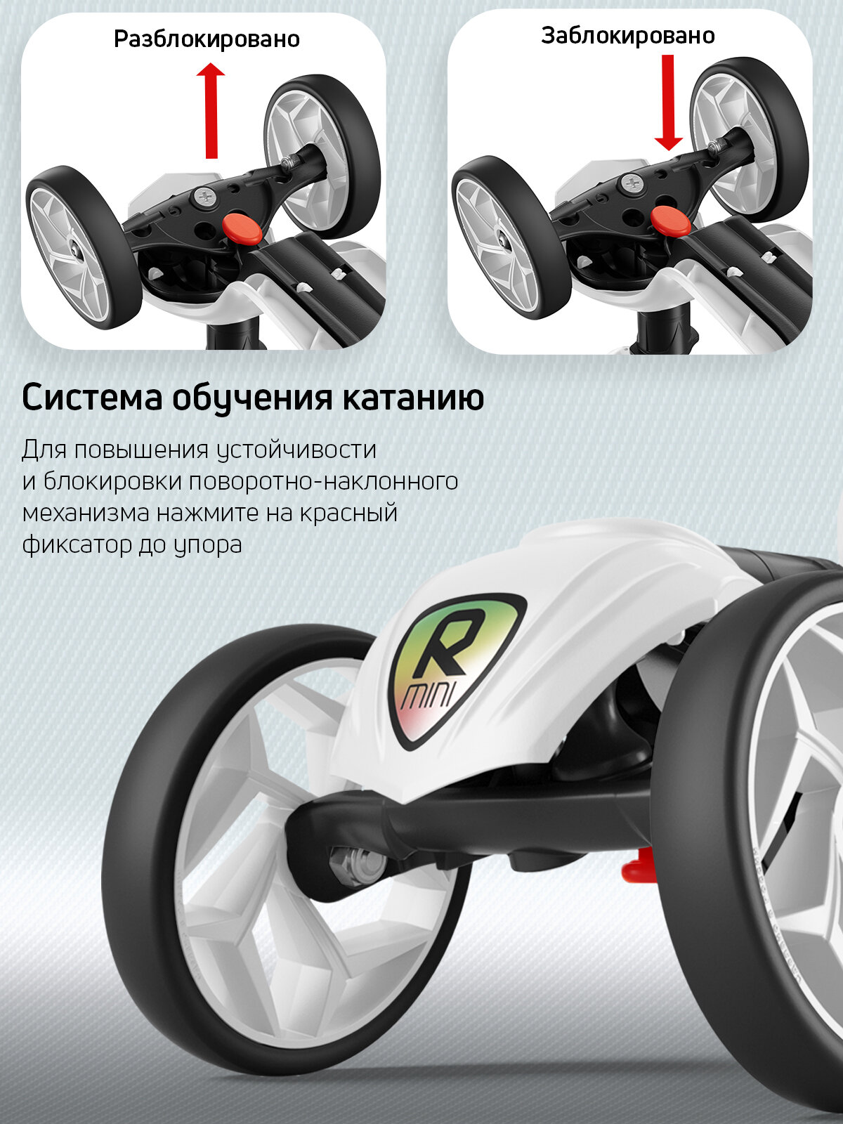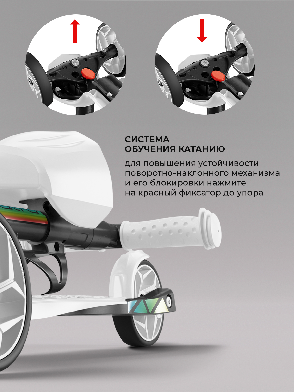 Порадовало , что можно заблокировать поворот руля. Малышке 1.3, только осваиваем самокат, так я за безопасность не переживаю Надеемся, в следующем году будут ещё со светящимся колёсами будут |
