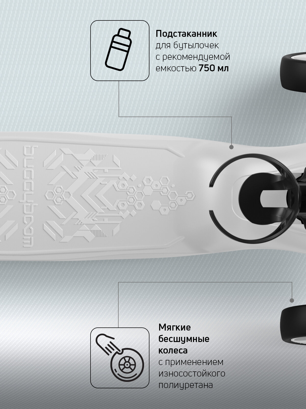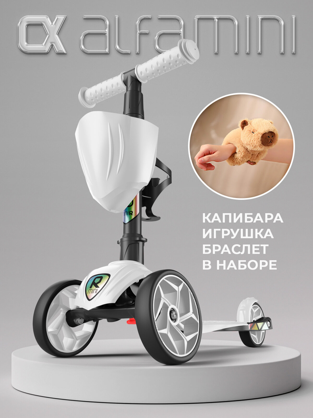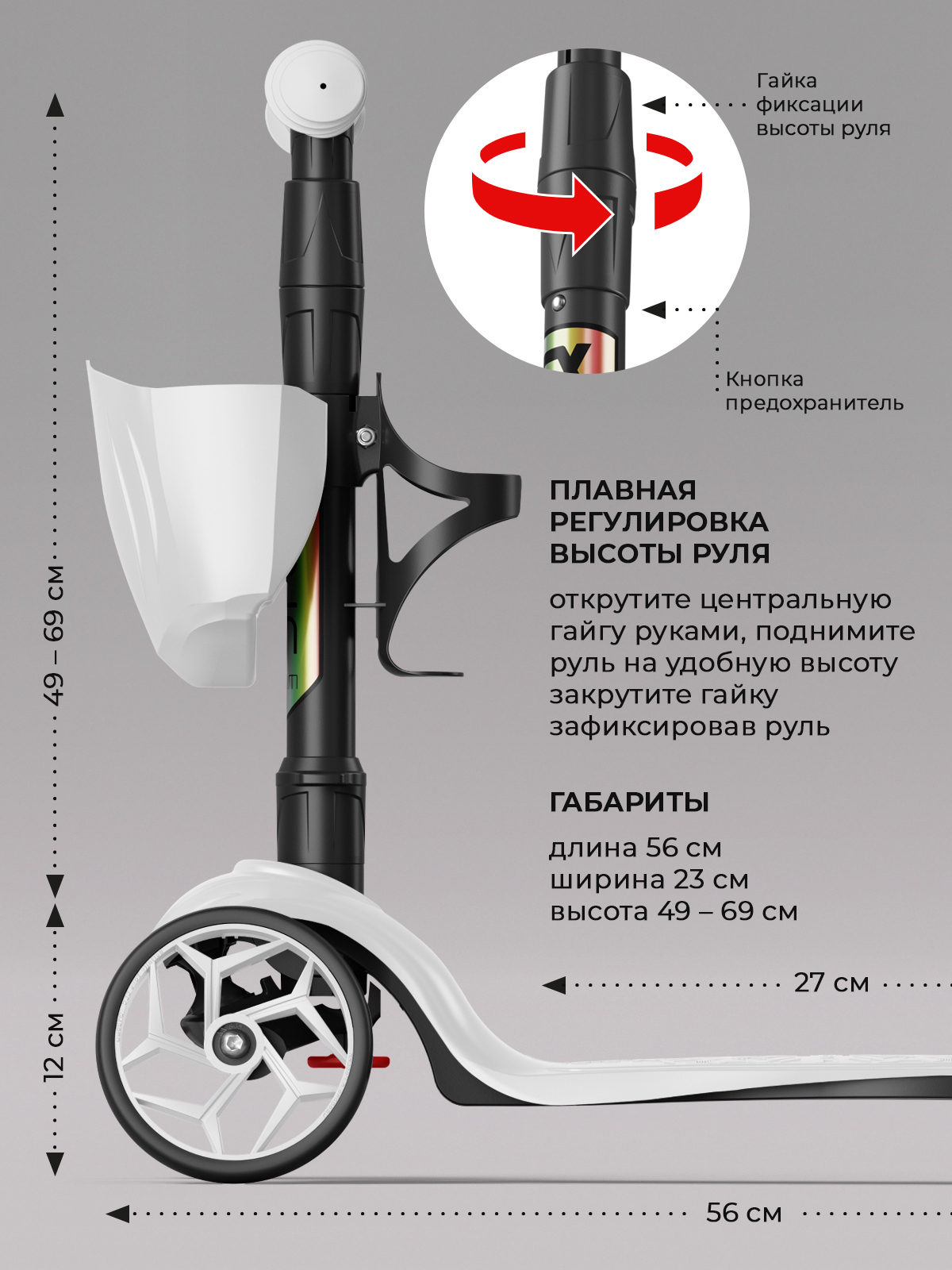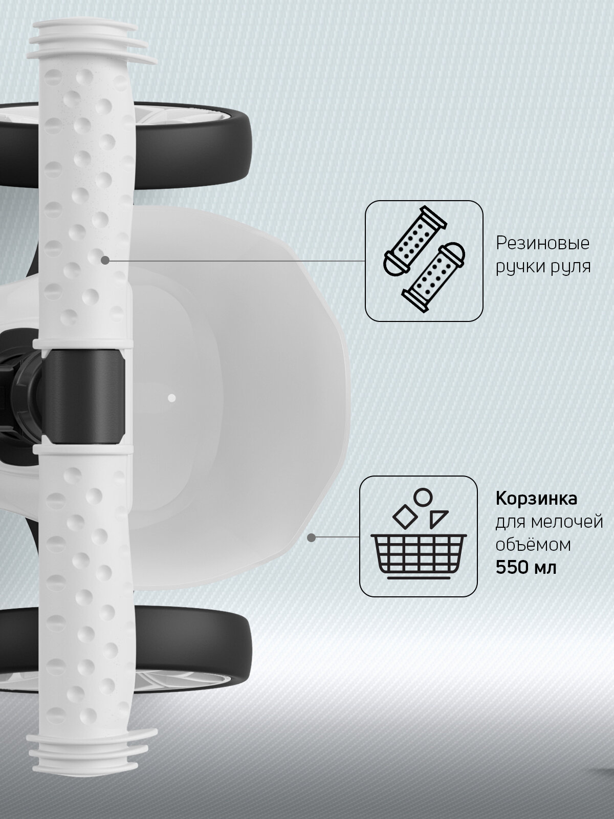 СохранитьСамокат, самокат трехколесный детский, с корзинкой и подстаканником для бутылок, Buggy Boom Alfa Mini, белый интересное: