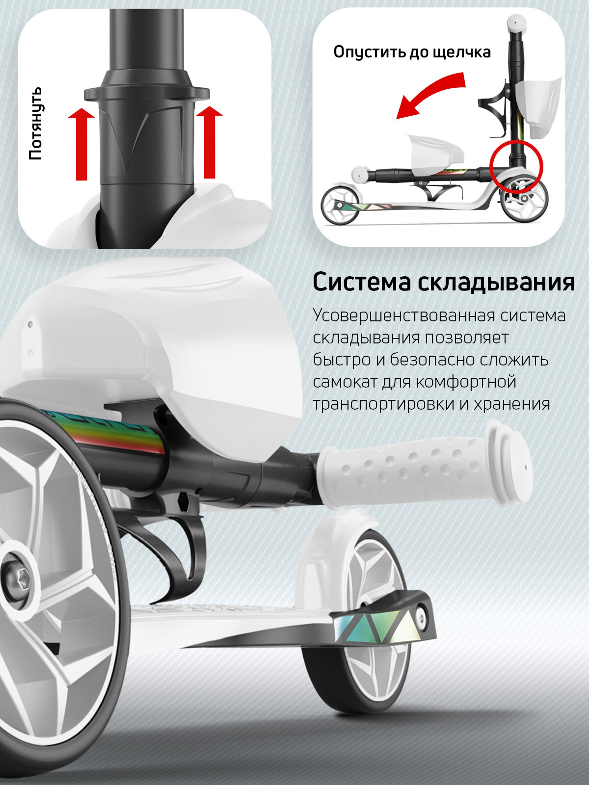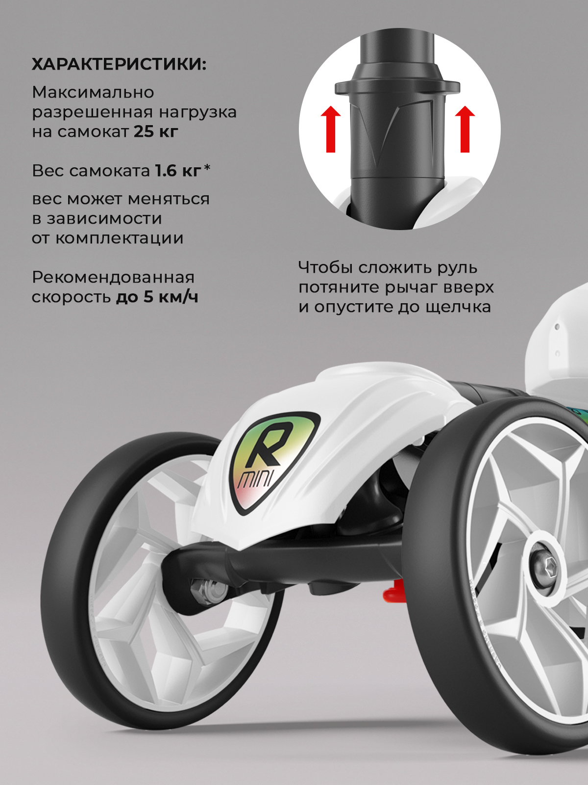 | Конструктивные особенности | регулировка высоты руля / складной |
