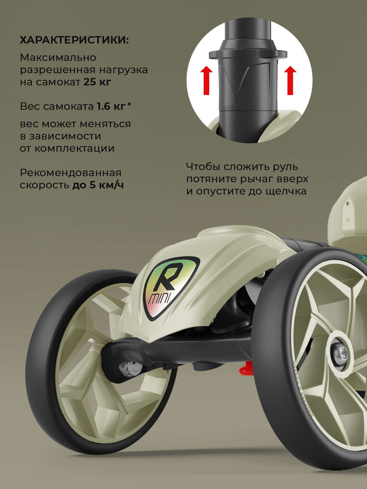 | Конструктивные особенности | регулировка высоты руля / складной |