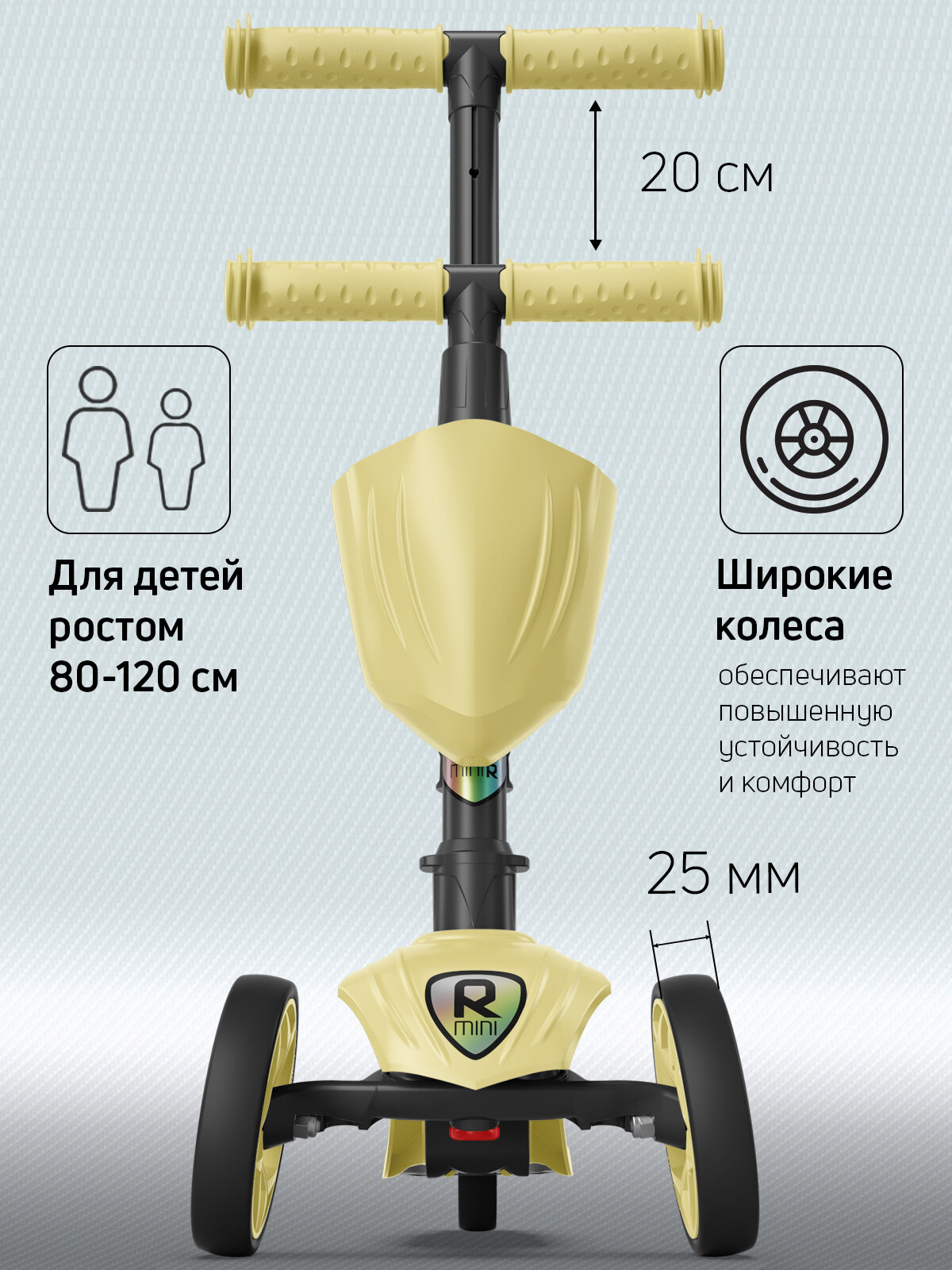 Самокат Alfa Mini XR (крем брюле 30) с не светящимися цветными колесами в коробке 004-8030 .