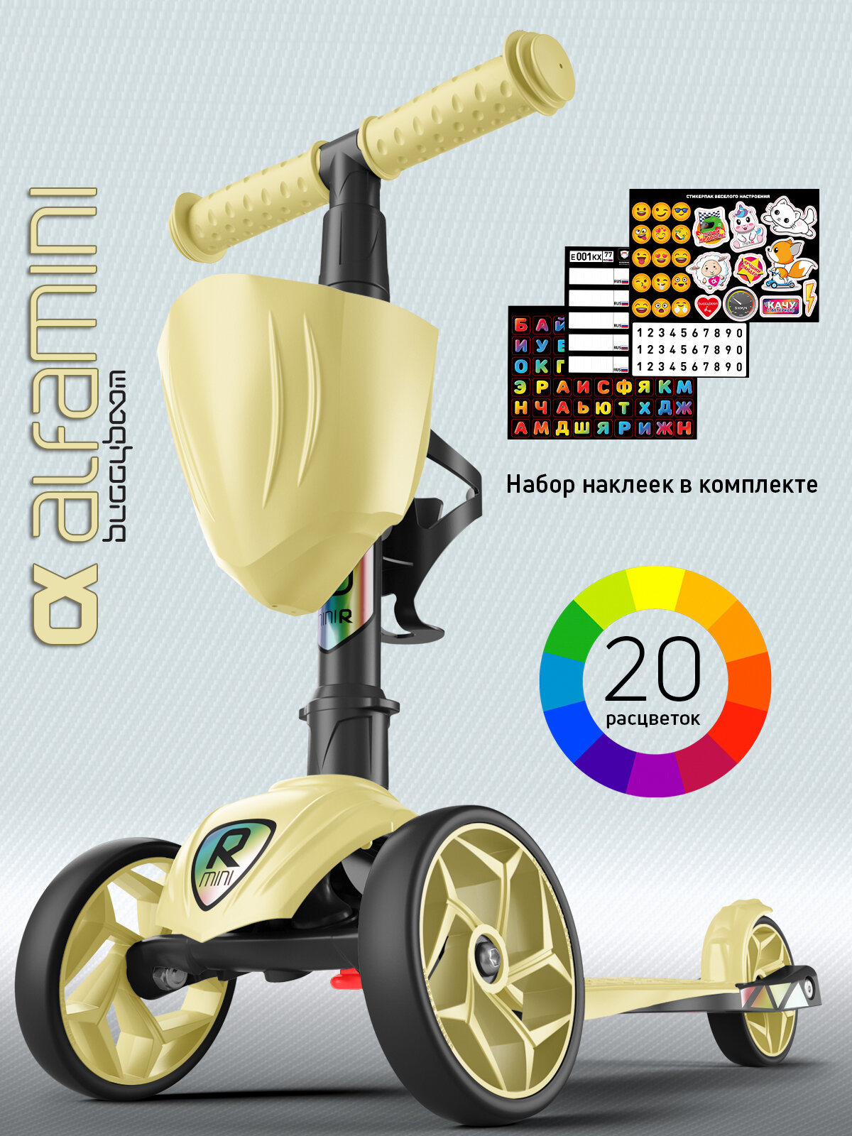 Купить Самокат, самокат трехколесный детский, с корзинкой и подстаканником для бутылок, Buggy Boom Alfa Mini, крем брюле