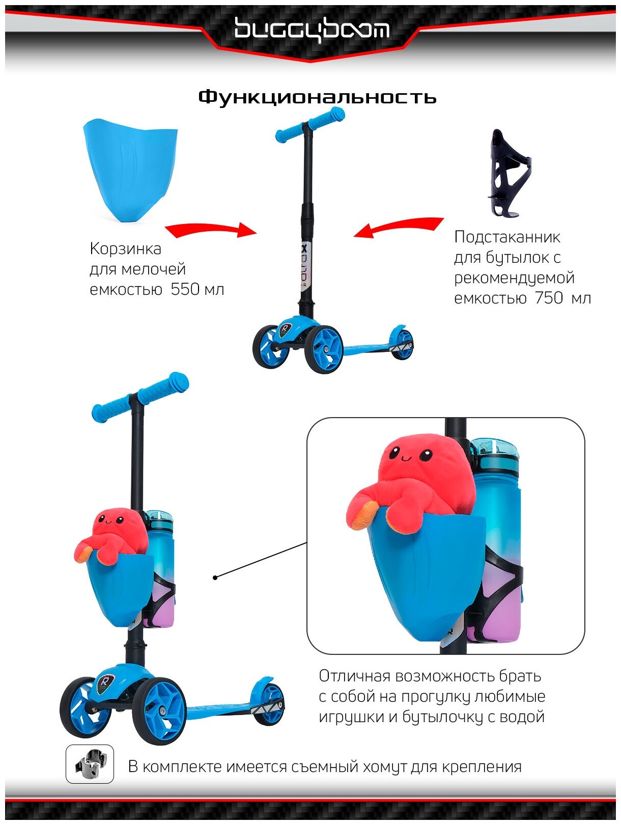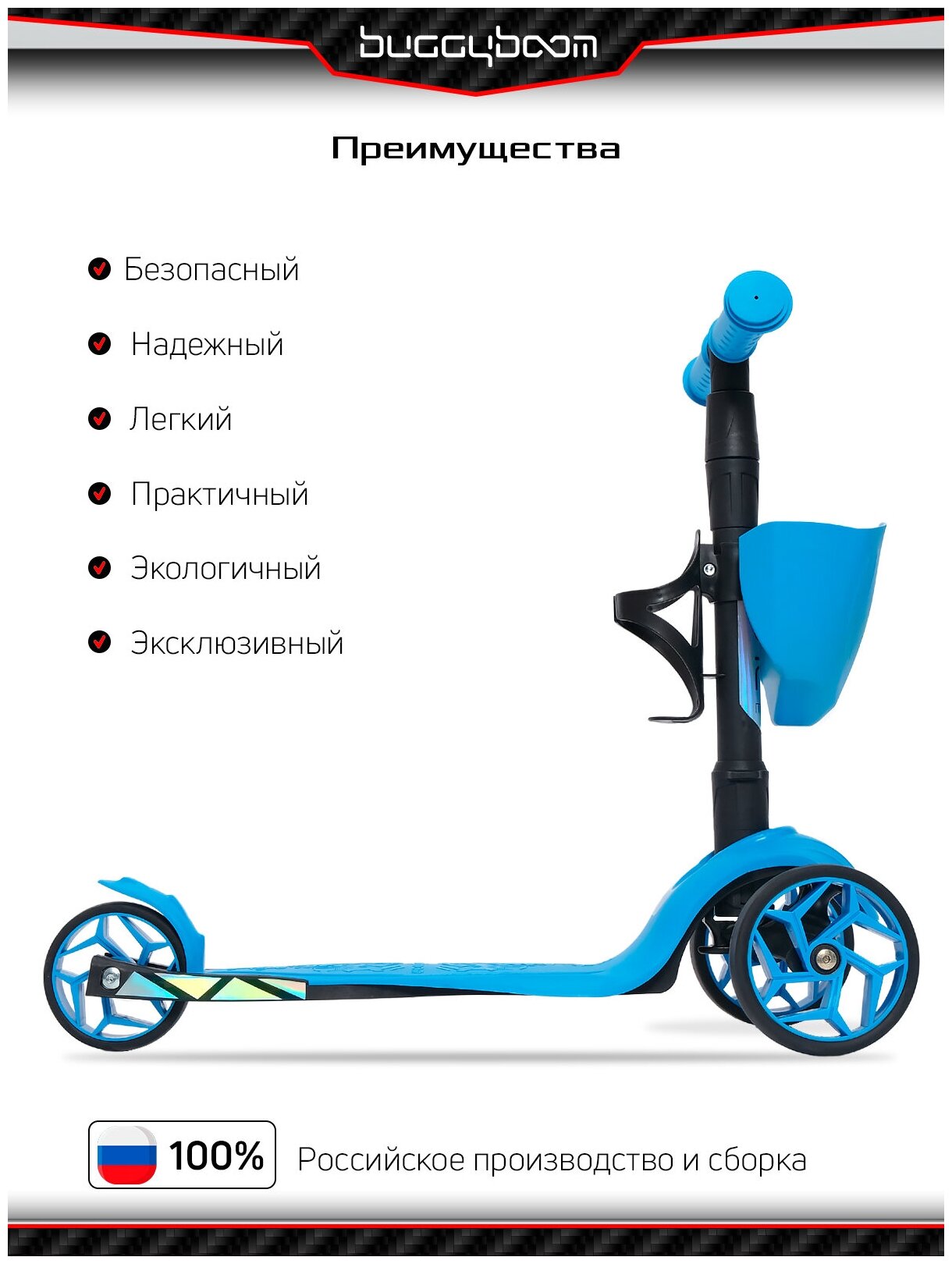Самокат детский трехколесный с корзинкой и подстаканником для бутылок от Buggy Boom