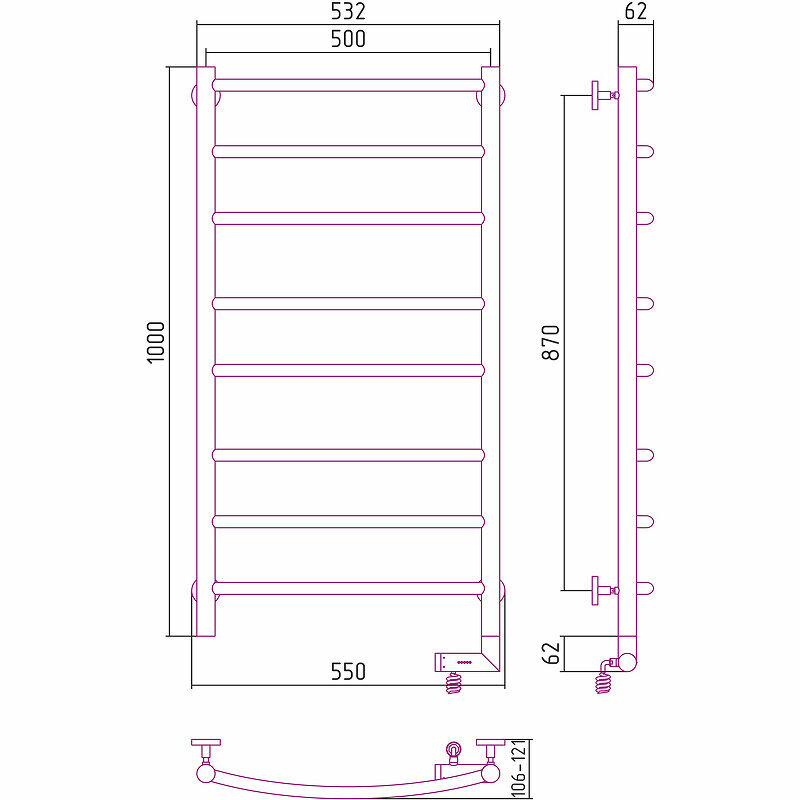 Электрический полотенцесушитель Сунержа Галант 00-5201-1050 Полотенцесушитель электрический