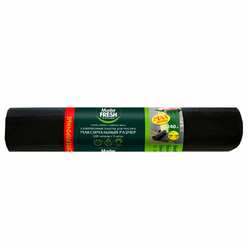 Пакеты суперпрочные для мусора, Master FRESH, 240 л, MAX, черные в рулоне, 5 шт