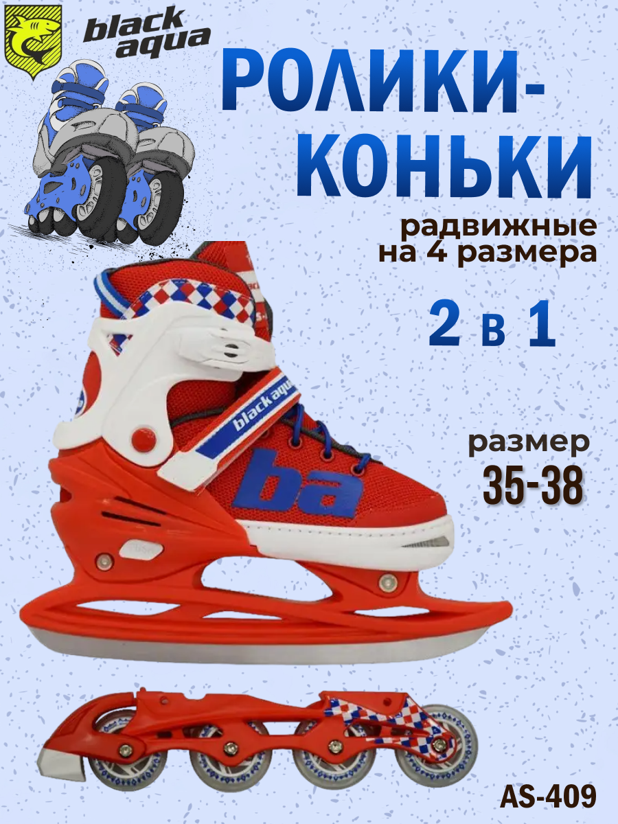 Коньки + ролики/ Коньки подростковые ледовые раздвижные с роликовой платформой BlackAqua AS-409 красно-синие размер 35-38 интересное:
