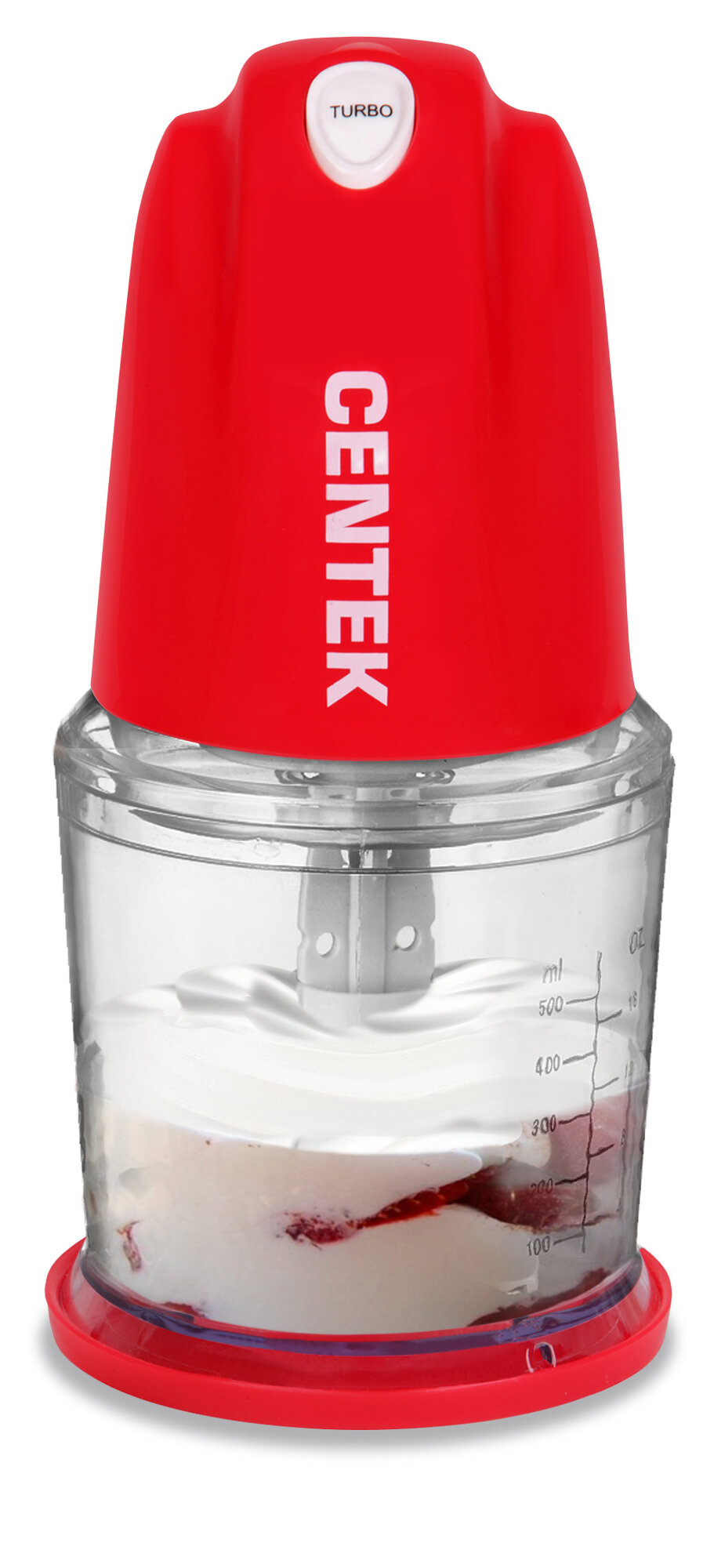 Чоппер Centek CT-1391 Red (красн) 350Вт, стакан 500 мл, насадка для сливок, турбо +импульсный режим