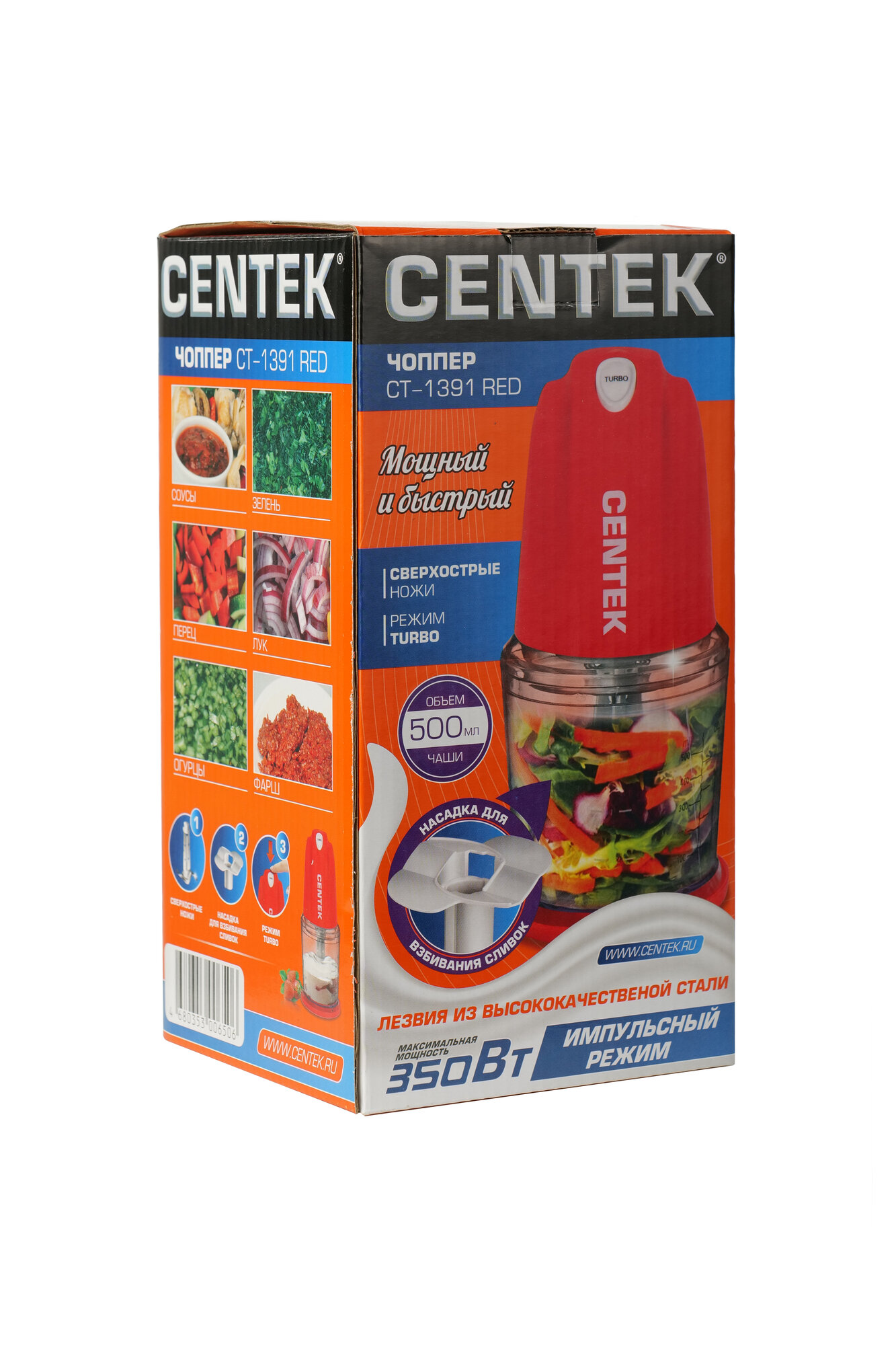 Измельчитель Электрический 350ВТ Лезв Нерж СТ Съемн Стакан 0,5Л Турбо РЕЖ Красн Centek .