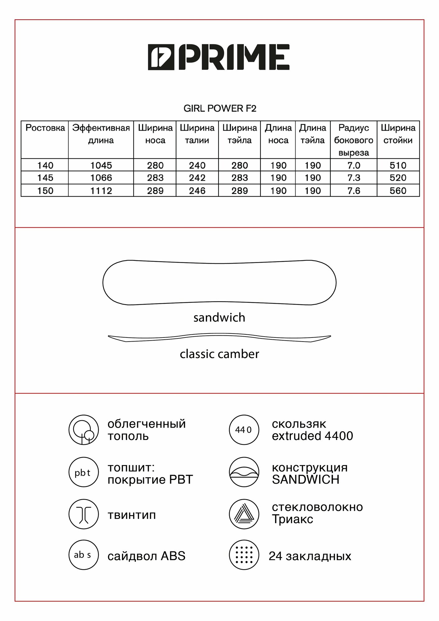 Сноуборд PRIME GIRL POWER F2 140 cm интересное: