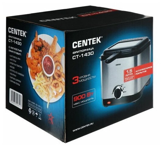 Ниже Вы можете прочитать отзывы на Фритюрница Centek CT-1430, 1500Вт, объём 1.5л, чаша антиприг, окно, серебристая, ознакомится с подробными характеристиками, посмотреть интересные обзоры и фотографии на Фритюрница Centek CT-1430, 1500Вт, объём 1.5л, чаша антиприг, окно, серебристая.