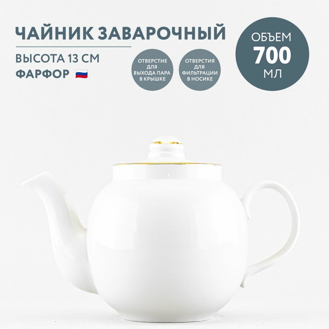 Чайник заварочный фарфоровый 700 мл Дулевский фарфор Отводка золотом