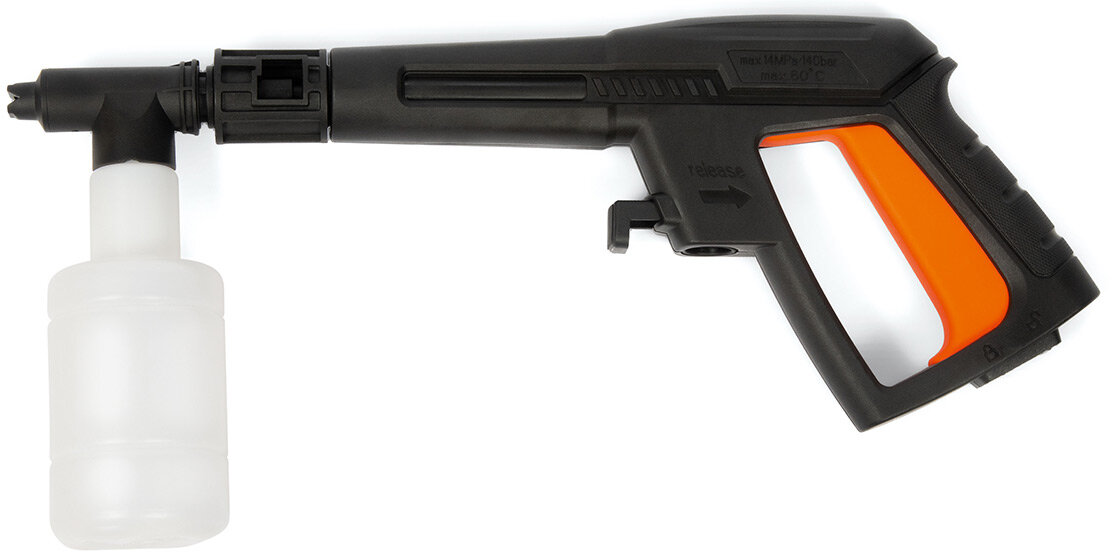 | Подробная комплектация | пистолет; шланг высокого давления, насадка на пистолет распылительная, насадка на пистолет грязевая фреза, дополнительный фильтр тонкой очистки, быстросъемный коннектор, пеногенератор, игла для прочистки сопла |