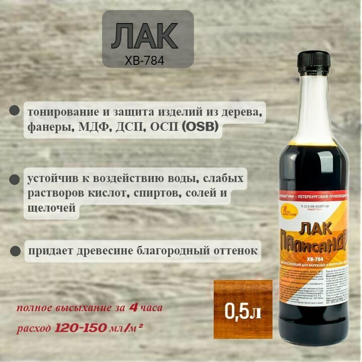 Лак ХВ-784 для дерева венге 0.5л Новбытхим ТУ 2313-006-45539771-98