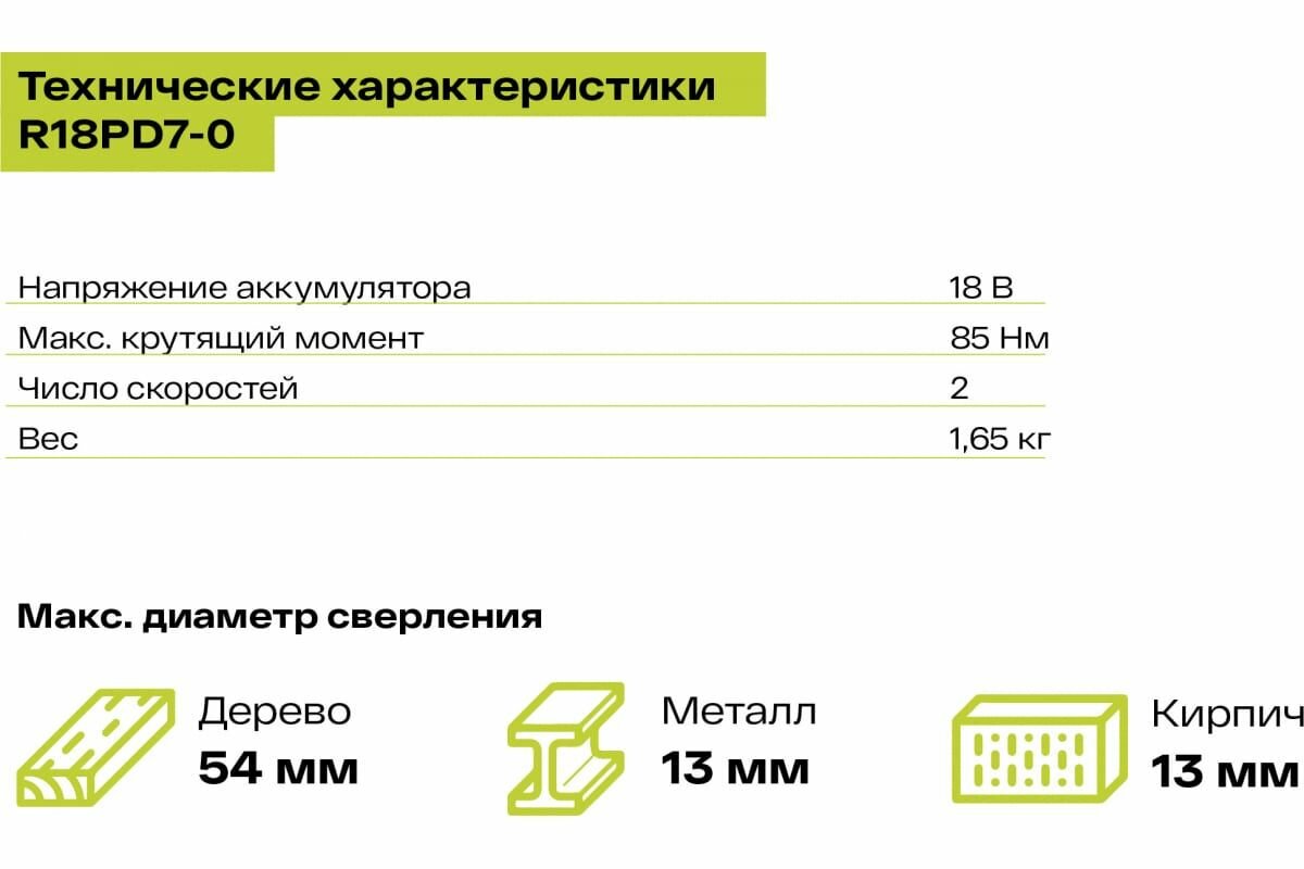 R18PD7-0 Дрель-шуруповерт Ryobi R18PD7-0 ONE+ Без АКБ
