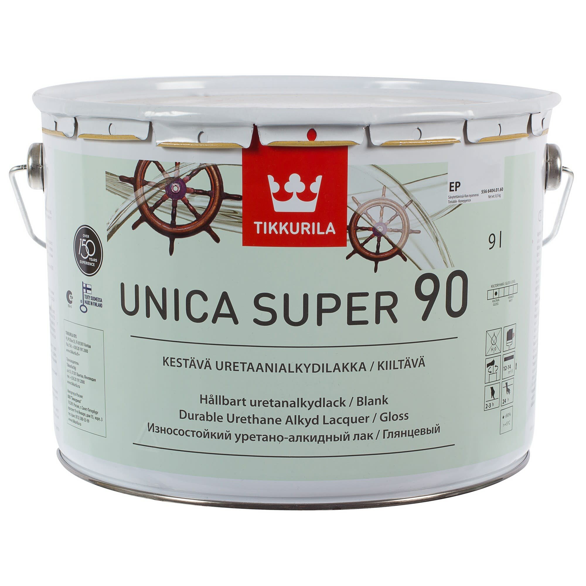Tikkurila Unica Super / Тиккурила Уника Супер 90 яхтный лак глянцевый 9л,