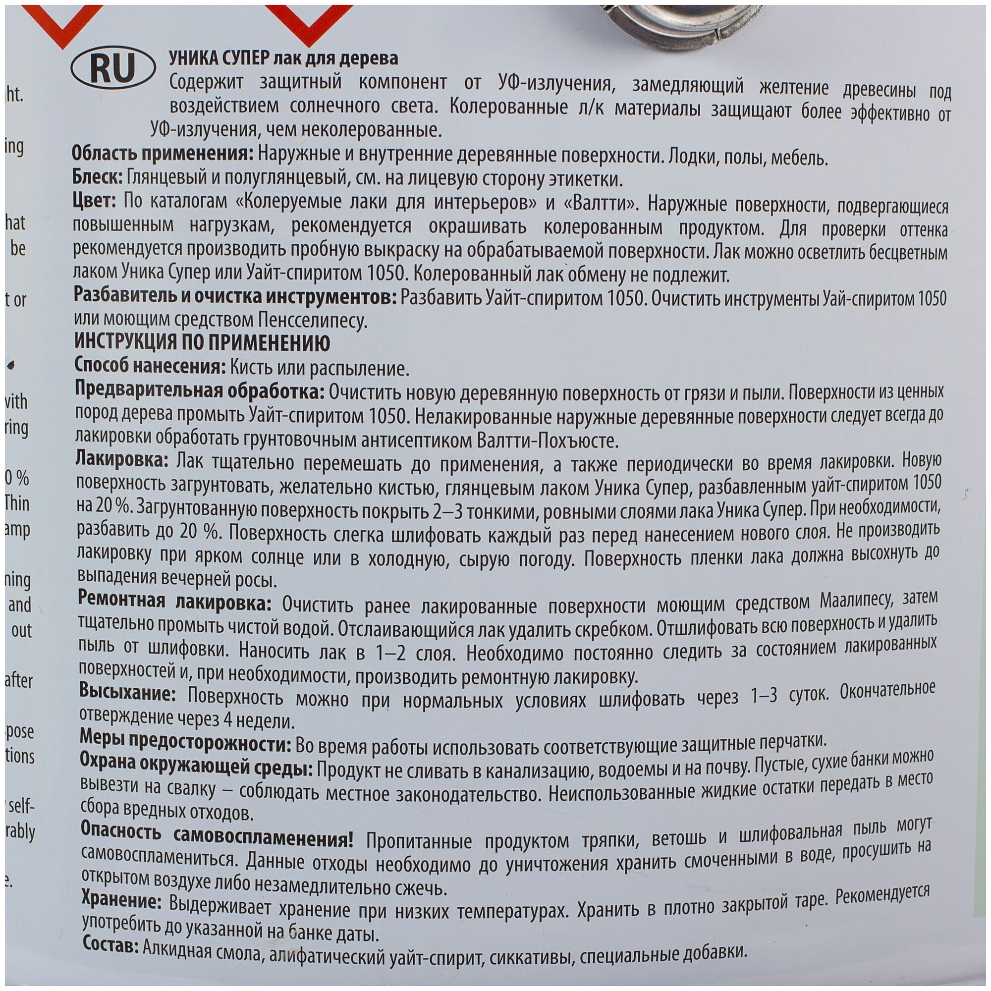 Tikkurila Unica Super / Тиккурила Уника Супер 90 яхтный лак глянцевый 0,9л,