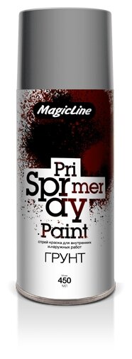Грунт аэрозольный MagicLine Primer Spray Paint, акриловый, серый, цветовой код RAL 7031, для различных поверхностей, баллон 450мл, арт. 910
