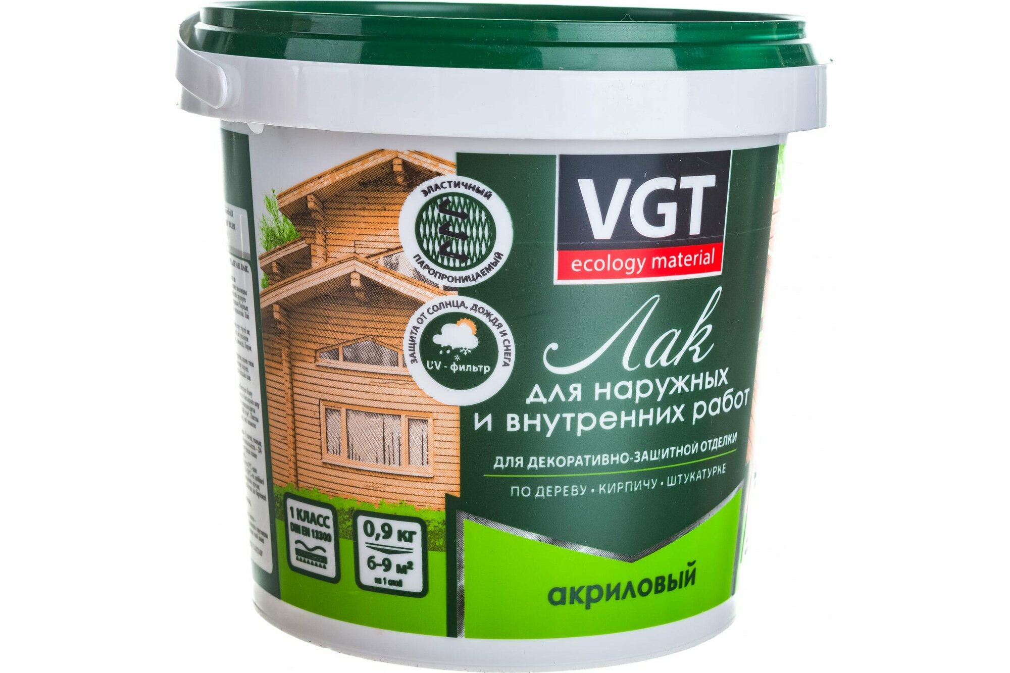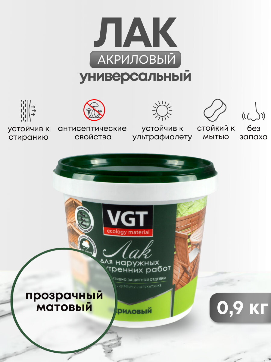 VGT Лак акриловый для наружных и внутренних работ, матовый, бесцветный 0,9кг 11600825 .