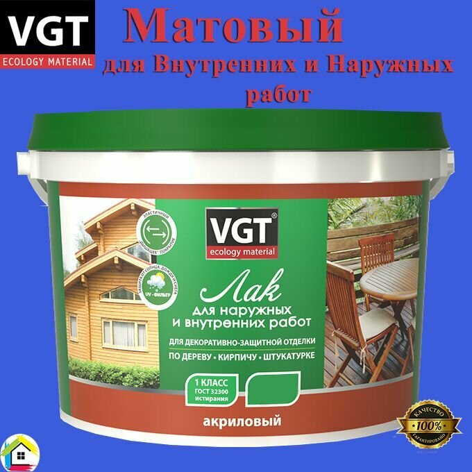 VGT ВГТ Лак акриловый для наружных и внутренних работ, матовый 2,2кг