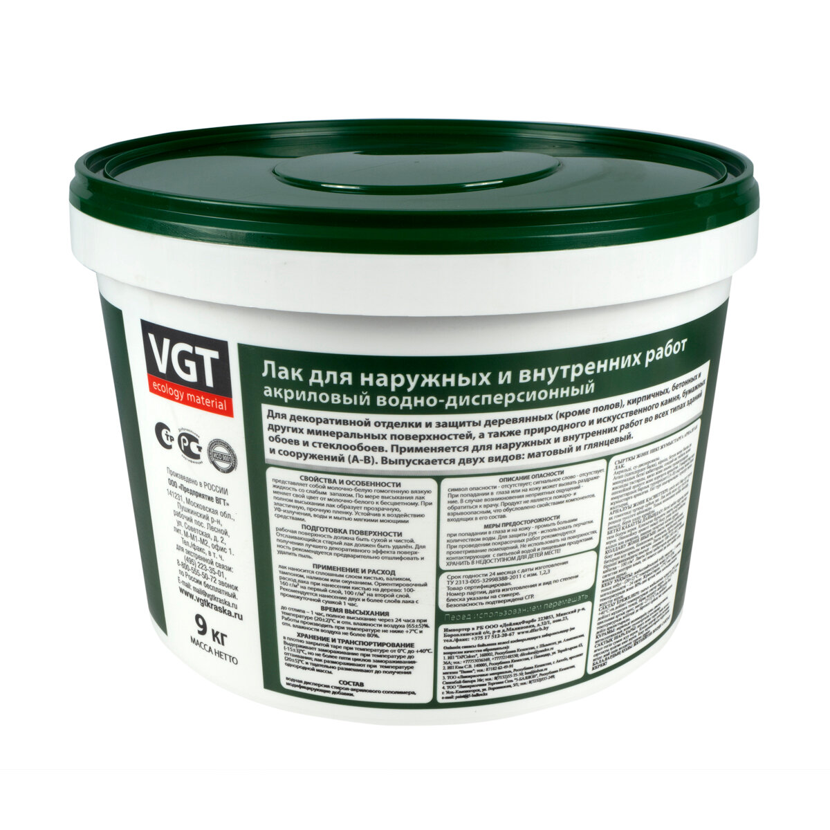 Купить ВГТ Лак акриловый для наружных и внутренних работ, матовый 9кг