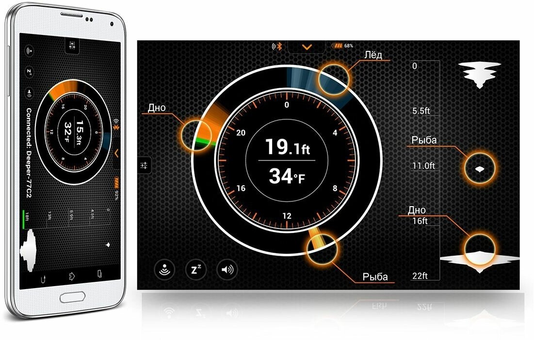 | Особенности | беспроводной эхолот-поплавок; для отображения информации используется экран смартфона или планшет; дальность действия беспроводной связи до 100 м; совместимость: iOS 11.0 и Android 4.4 и выше |