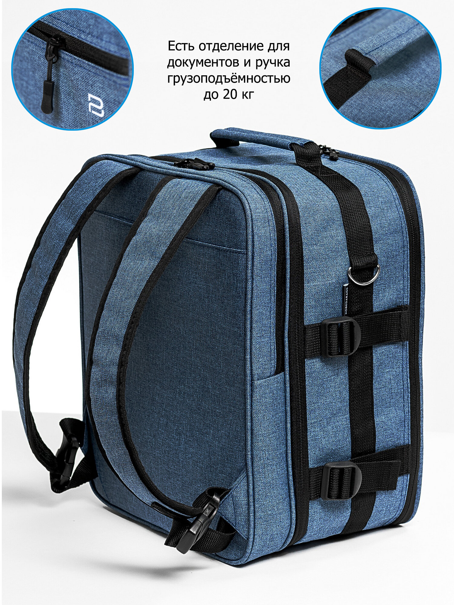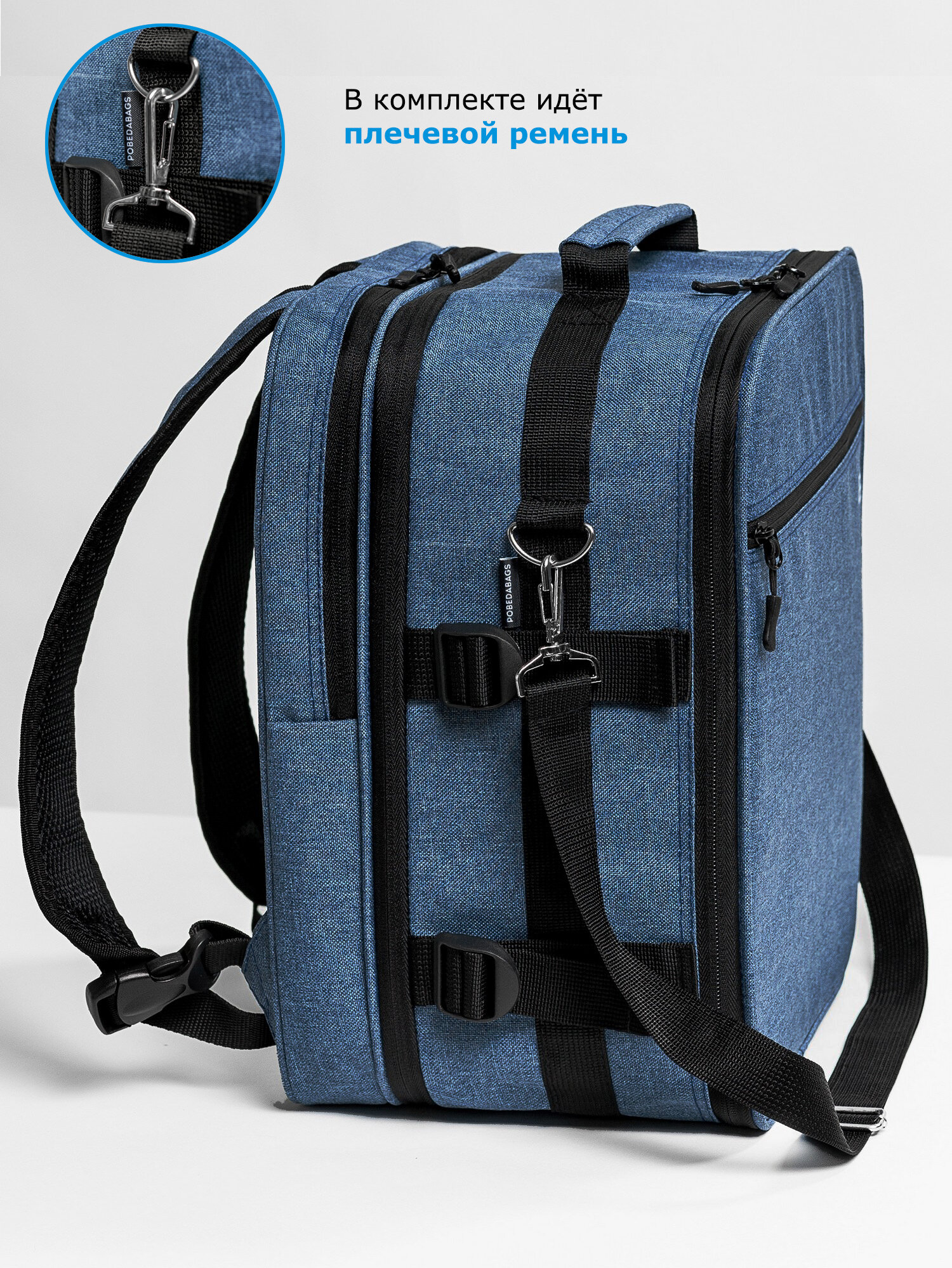 Рюкзак-трансформер для ручной клади 36х30х27 Pobedabags Sky Base интересное: