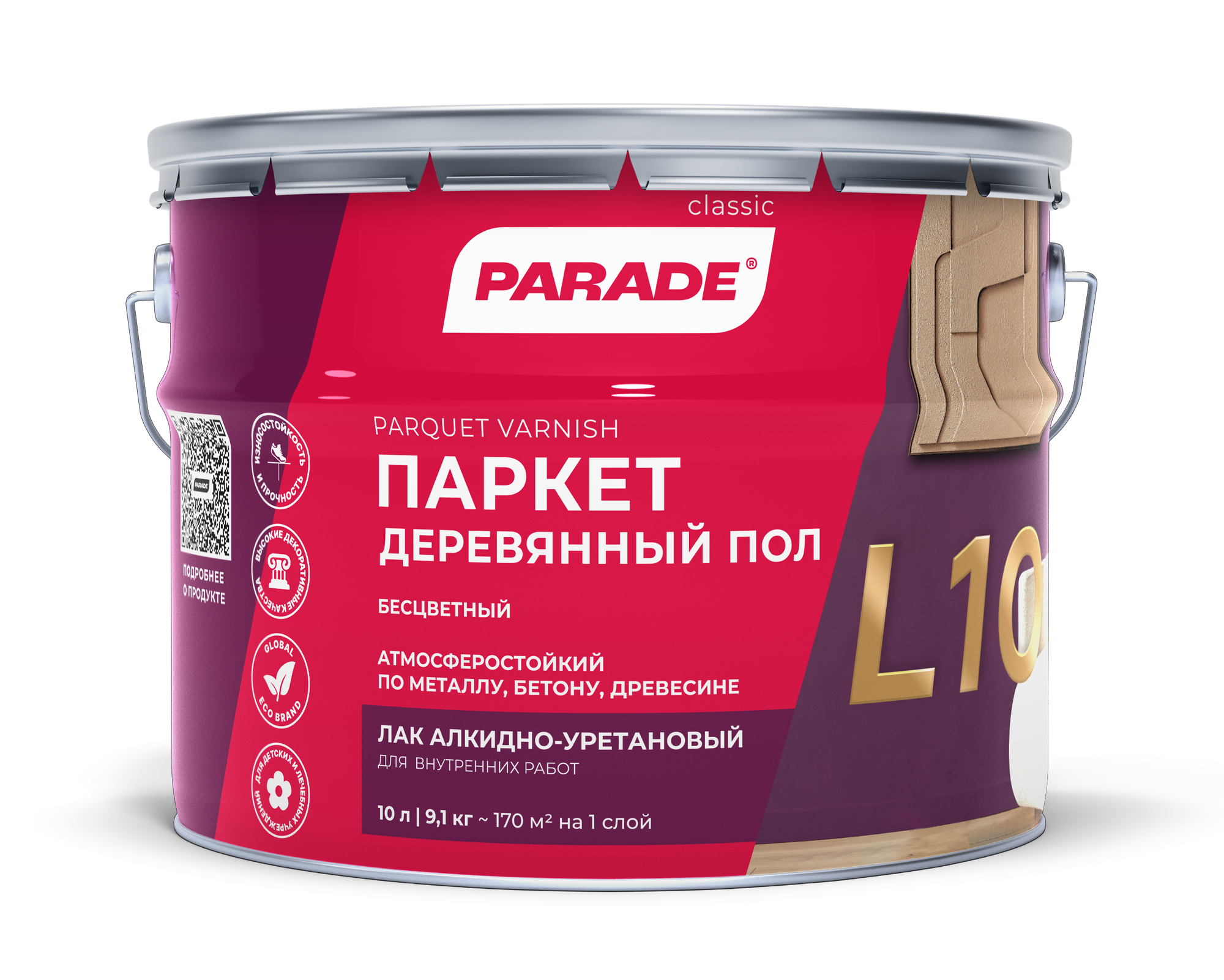 0006104 Лак паркетный алкидно-уретановый PARADE L10 Паркет & Деревянный пол Полуматовый 10л