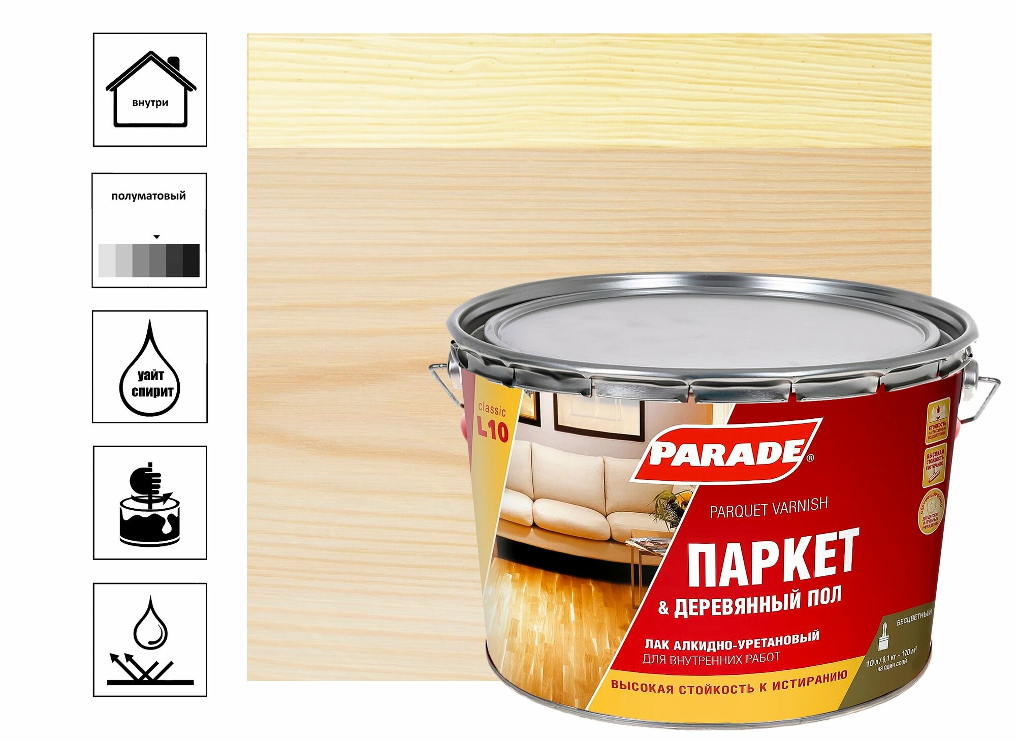 Паркетный лак Parade Classic L10 (Параде Параде Классик Л10), (10.00л.) полуматовый