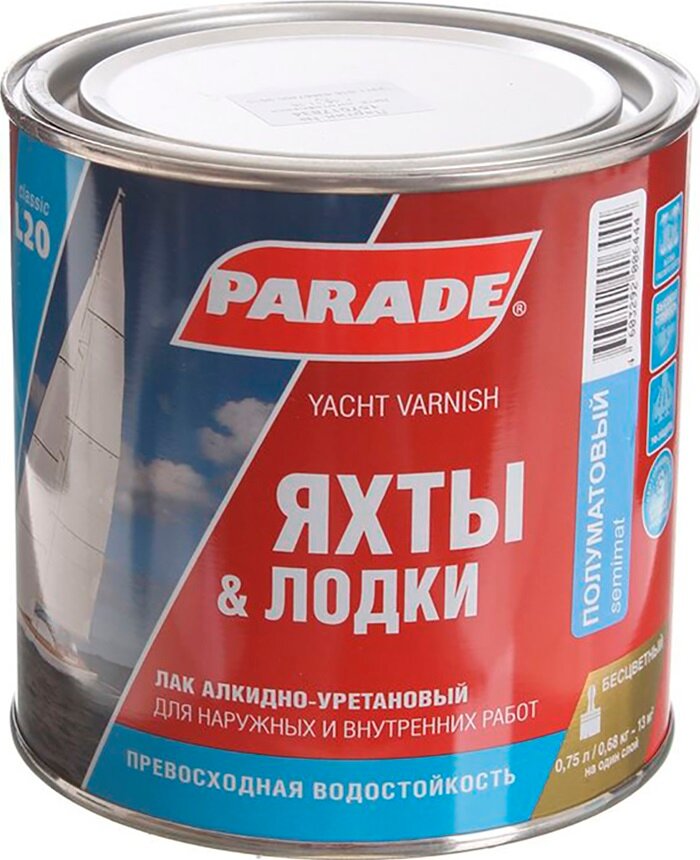 Лак Яхтный Parade L20 Яхты & Лодки 0.75л Полуматовый, Алкидно-Уретановый / Парад Яхтный
