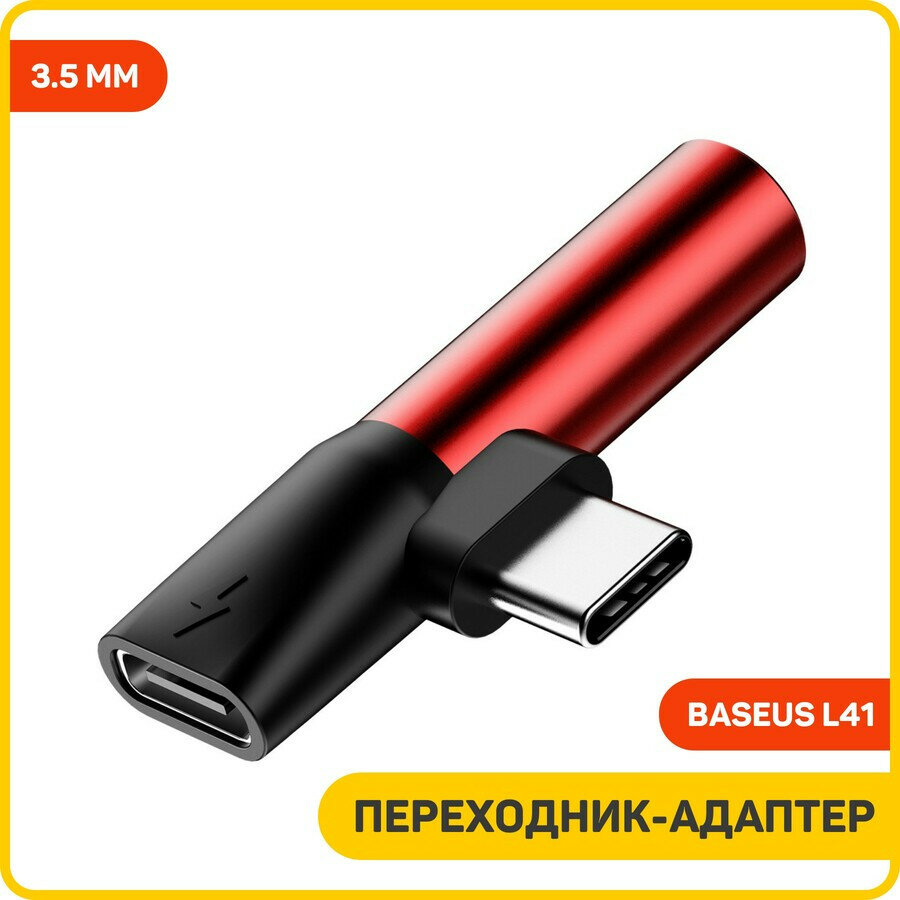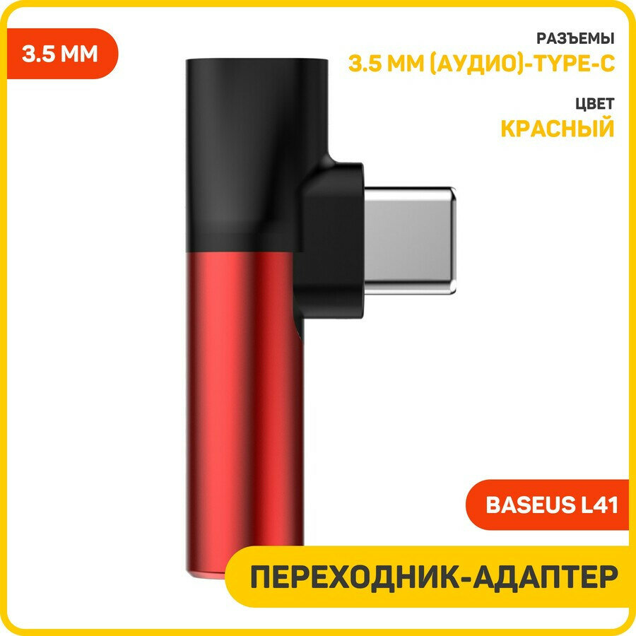 Купить Переходник (адаптер) Baseus L41 3.5 мм/Type-C-Type-C (металл) красный