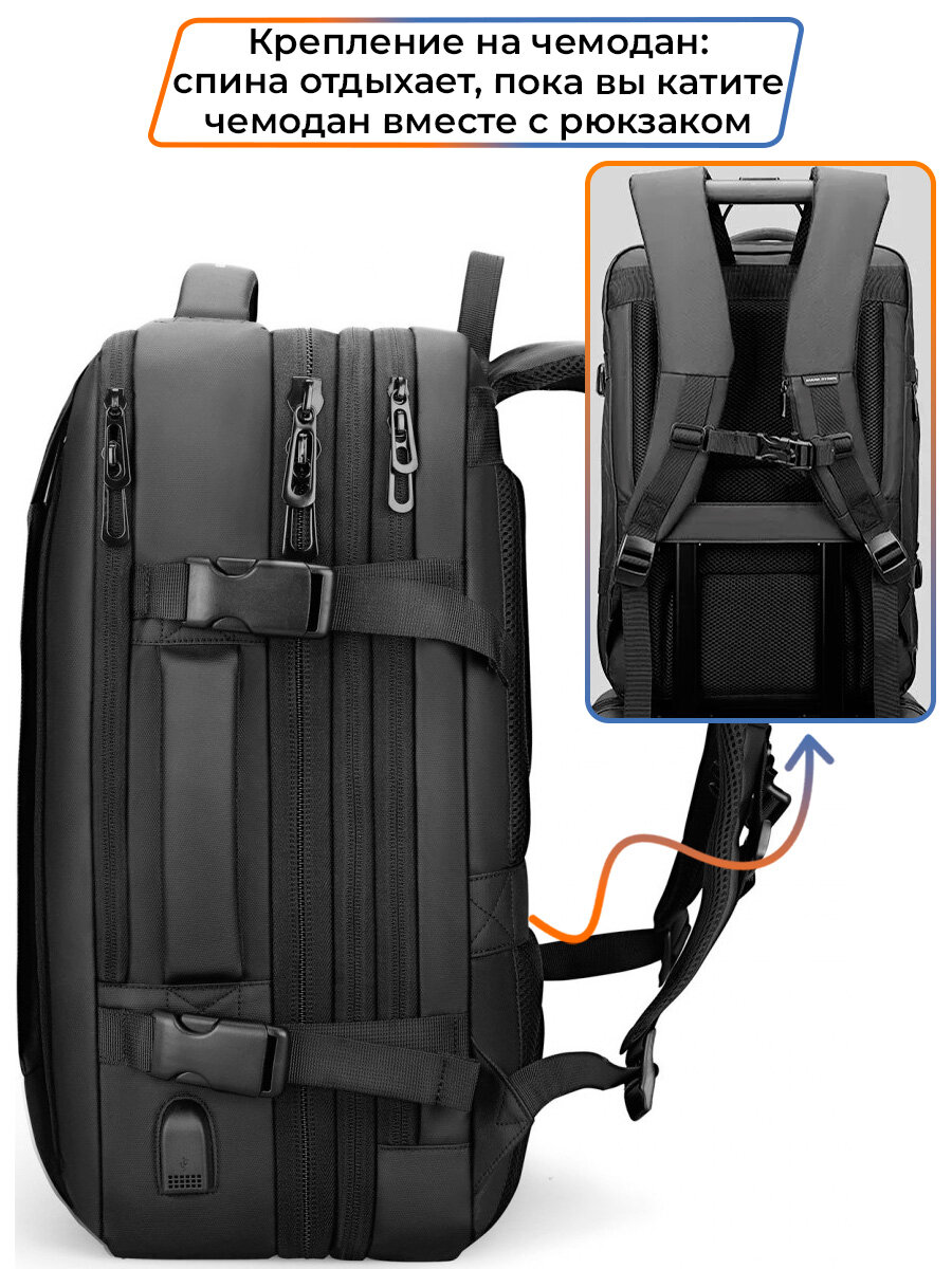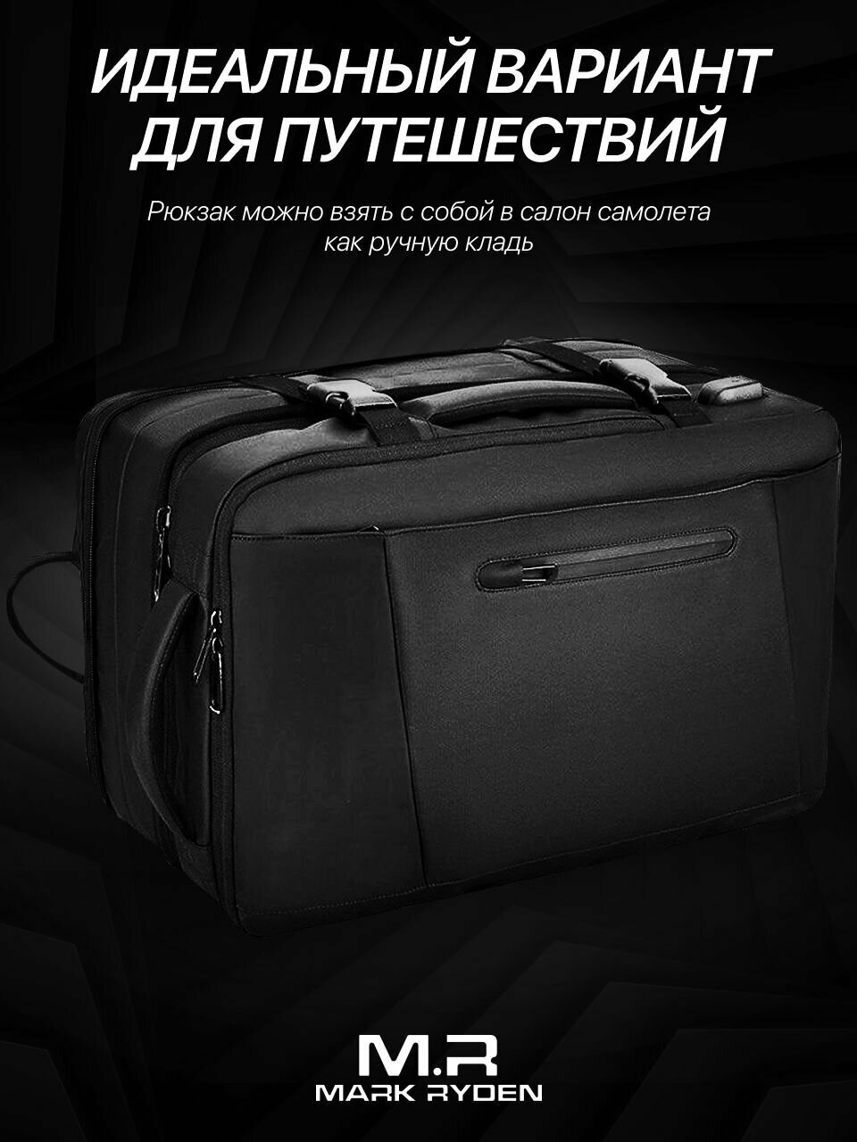 Рюкзак-сумка мужской городской дорожный Mark Ryden большой 38л, для ноутбука 17", водонепроницаемый, с изменяемым объемом, цвет черный