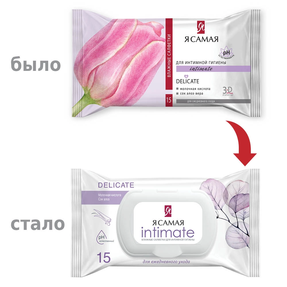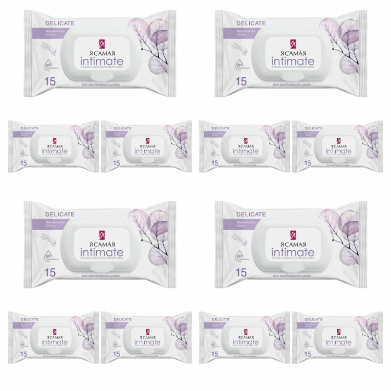 Салфетки влажные для интимной гигиены Я Самая Intimate Delicate с соком алоэ вера и молочной кислотой 15 шт