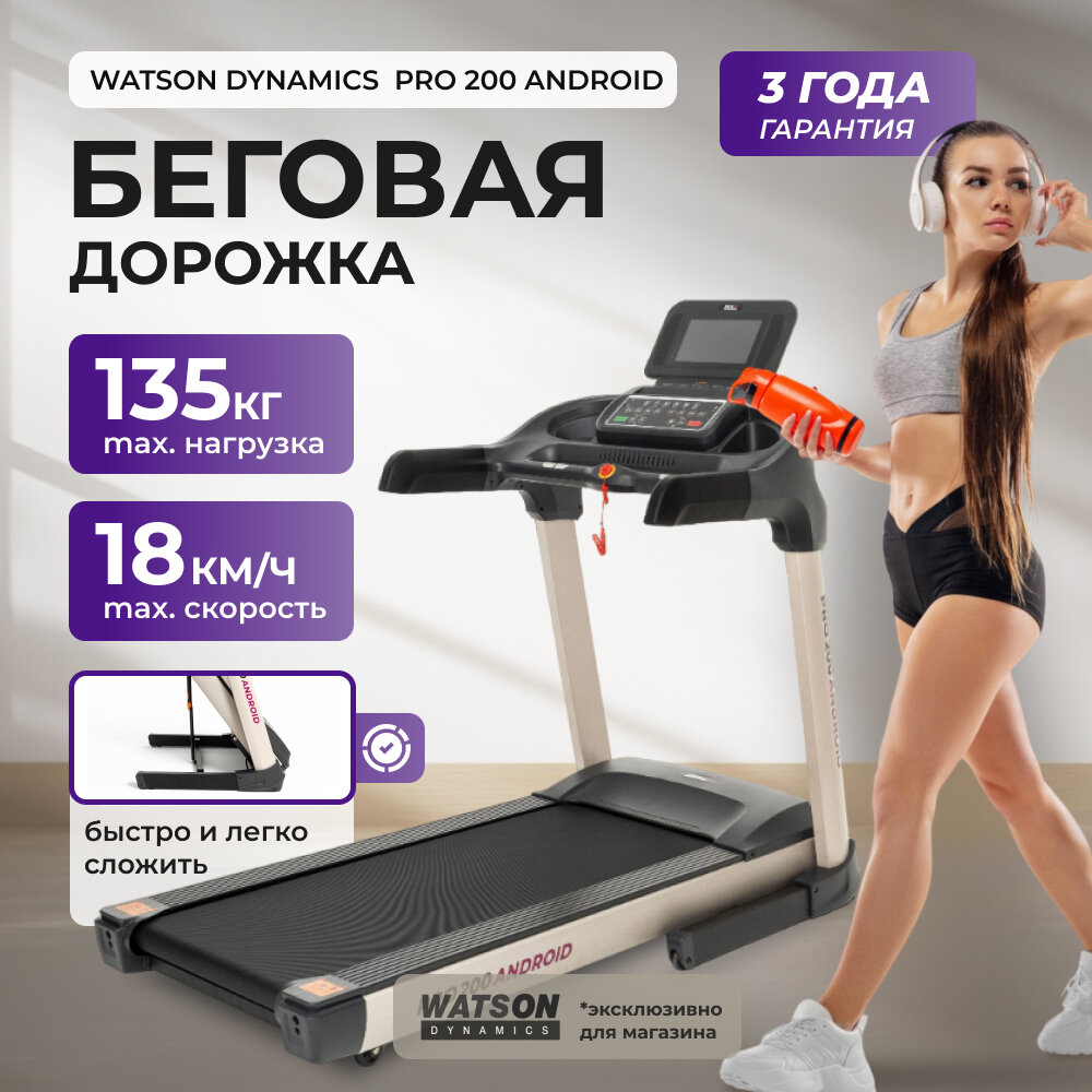 Купить Беговая дорожка электрическая складная для дома Watson Dynamics Pro 200 Android максимальный вес 135 кг.