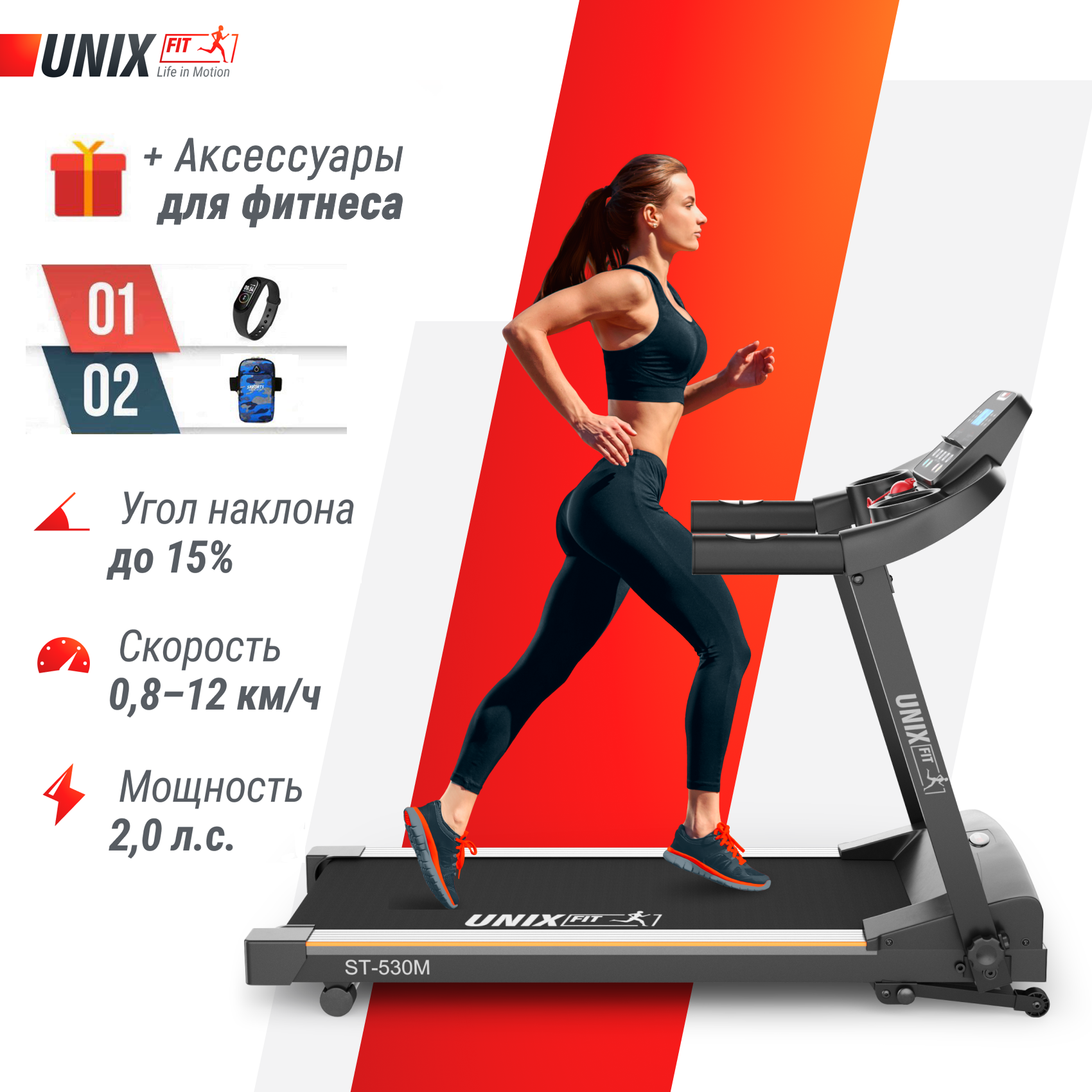 Беговая дорожка UNIXFIT ST-530M + аксессуары для фитнеса интересное: