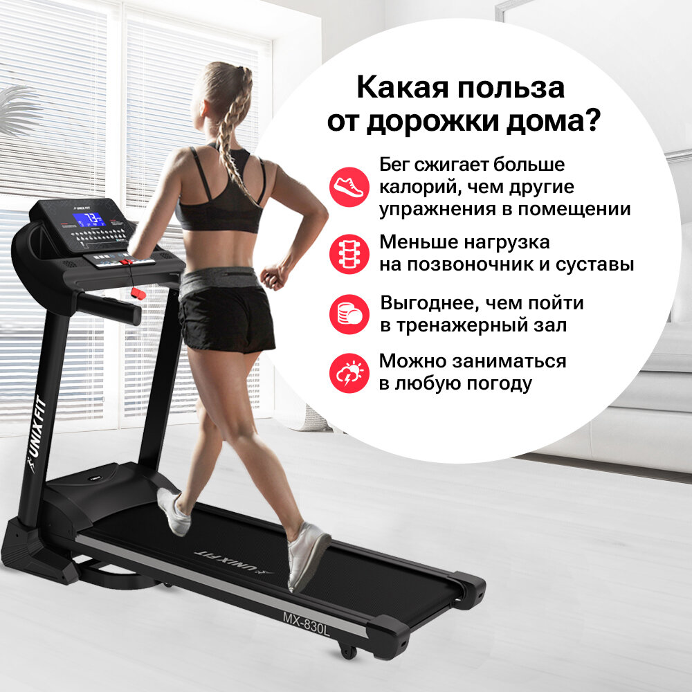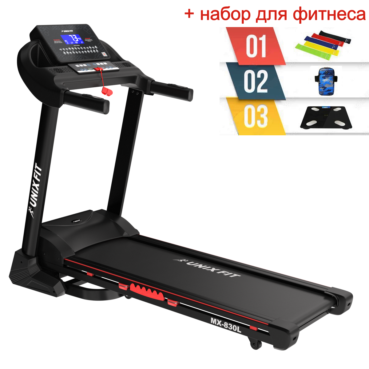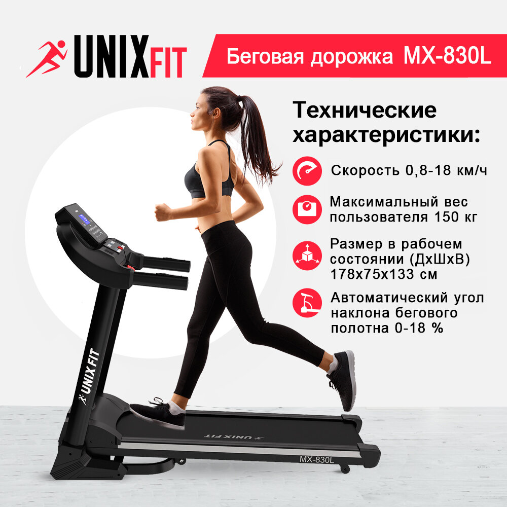 Беговая дорожка UNIXFIT MX-830L + набор для фитнеса интересное: