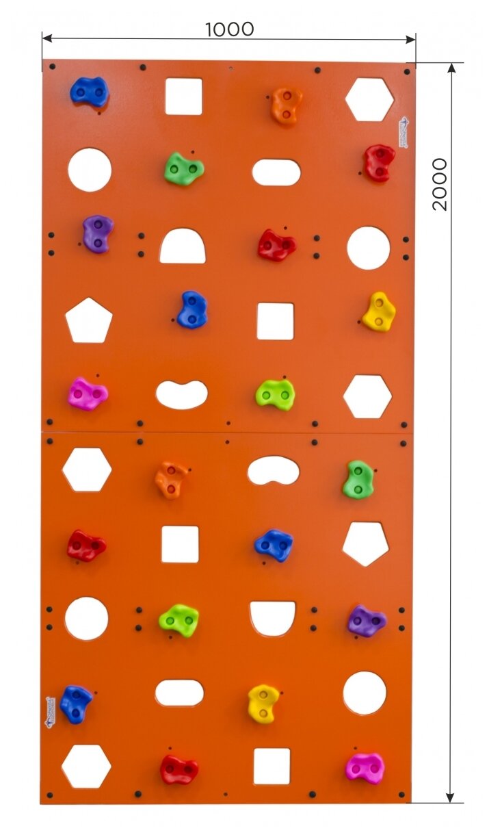 Детский скалодром пристенный с отверстиями 1000х2000 стандарт Эльбрус (20 зацепов) (Оранжевый) - Стена скалодром Формула Здоровья