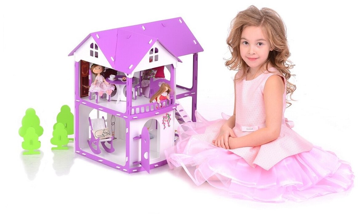 Домик для кукол "Коттедж Светлана" цвет: бело-сиреневый (с мебелью) 000251 /Krasatoys/ интересное: