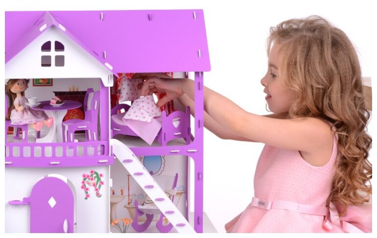 Купить Домик для кукол "Коттедж Светлана" цвет: бело-сиреневый (с мебелью) 000251 /Krasatoys/