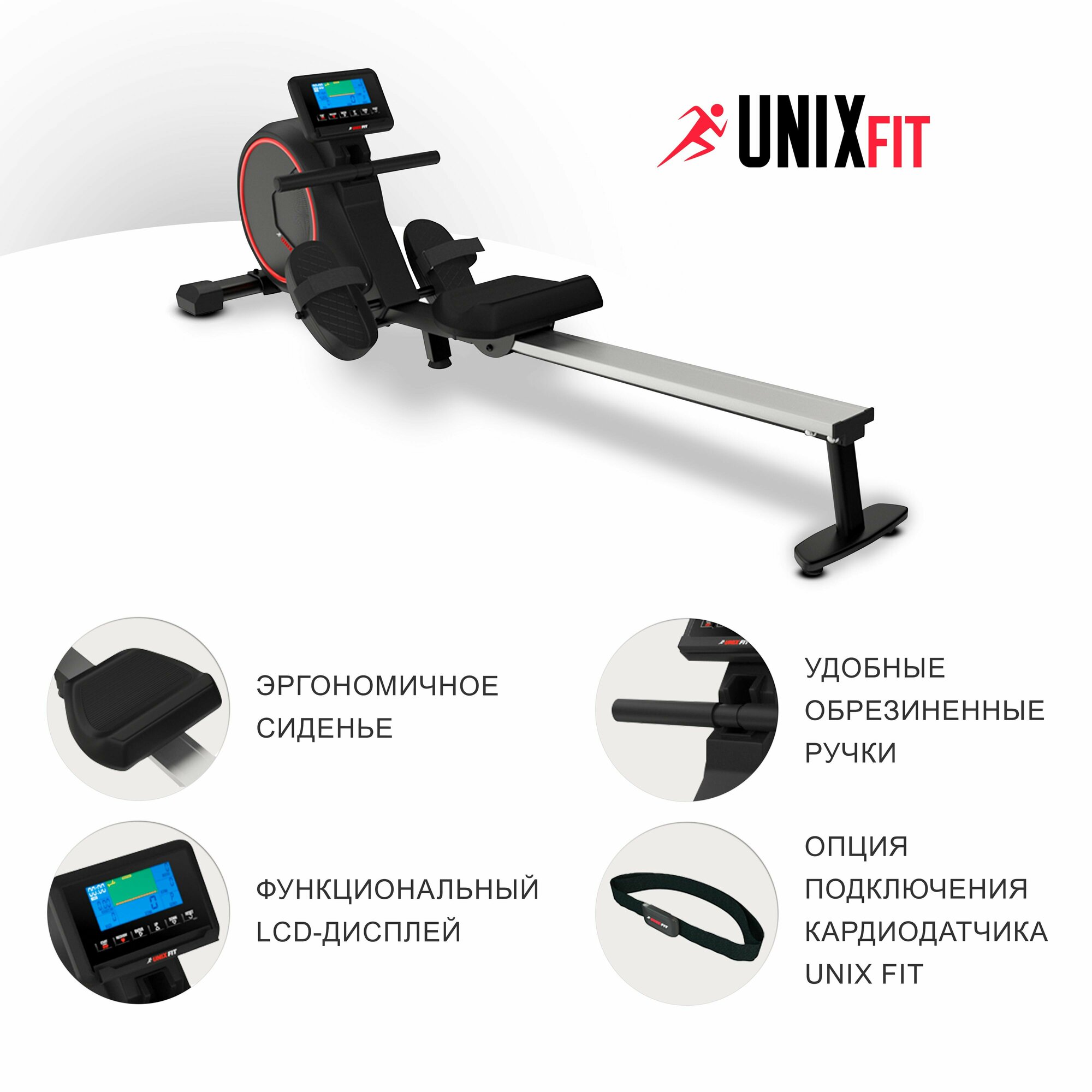 Гребной тренажер UNIX Fit Techno Rower 410E электромагнитный кардио тренажер спортивный для дома, для спины, ног и рук, до 130 кг UNIXFIT