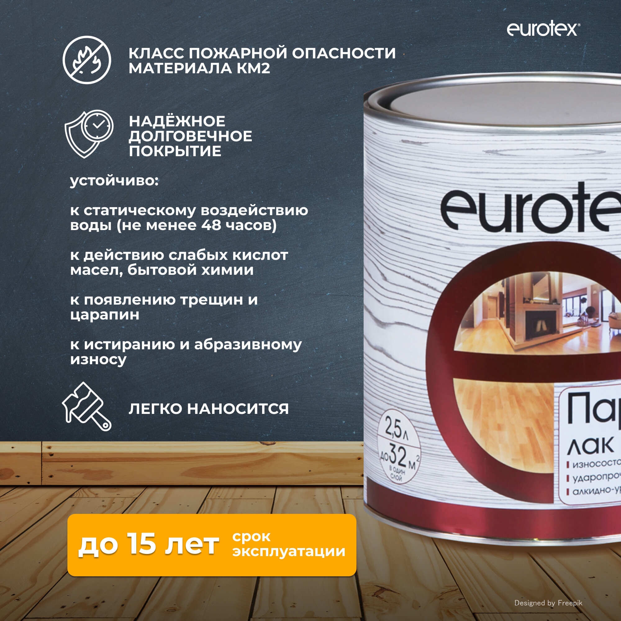 Лак паркетный Eurotex Premium, алкидно-уретановый, полуматовый, 2,5 л
