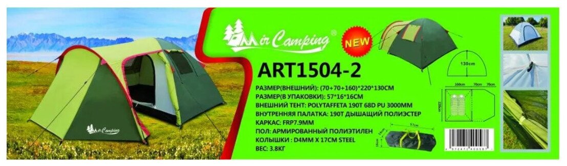 Палатка 2-местная MirCamping Двухместная с тамбуром 1504-2 интересное: